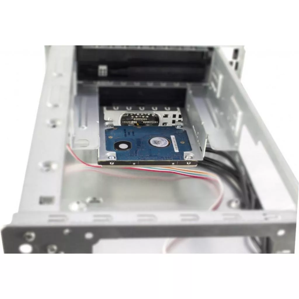 Несмотря на свой компактный размер, в этот корпус Mini-ITX можно установить внешний 5,25-дюймовый (DVD/CD). Все компоненты можно легко и удобно установить, сняв U-образную крышку. Отверстия для сетки по бокам крышки а также на задней стороне корпуса дают возможность постоянный поток воздуха, что обеспечивает хорошее охлаждение встроенного оборудования.