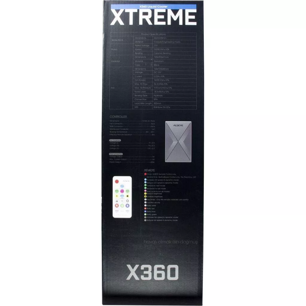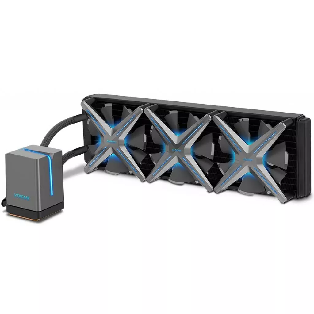 Водяное охлаждение X360 AiO серии (модельного ряда) X от ALSEYE впечатляет своей компактной конструкцией и, благодаря охлаждающей пластине из меди и радиатору из чистого алюминия, обеспечивает надежный и стабильный отвод выделяемого тепла. Три 120-мм вентилятора X12 надежно отводят тепло со скоростью до 1600 об/мин, а также светятся насыщенными цветами RGB.