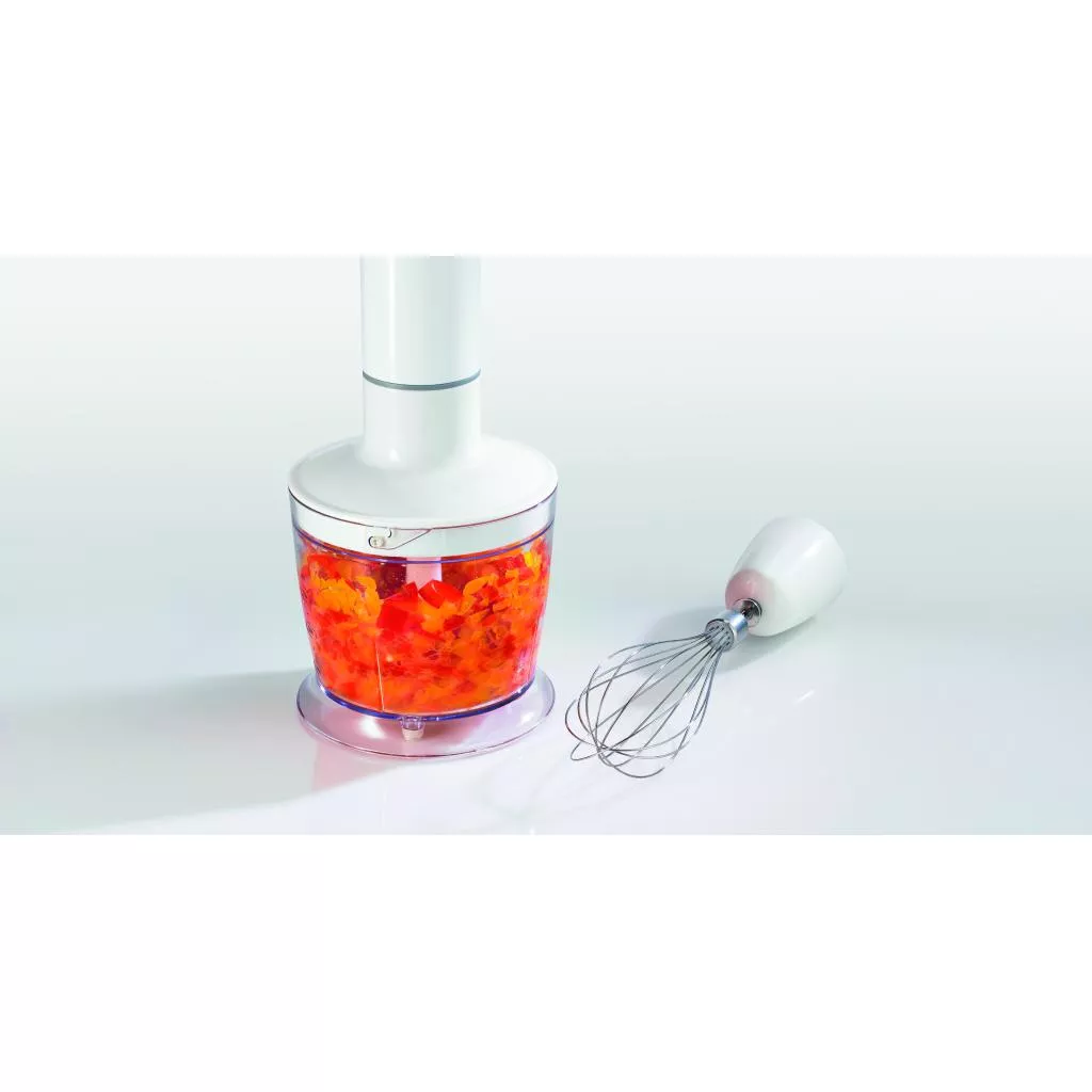 Модель поставляется вместе с сопутствующими аксессуарами, которые позволят максимально и в полном объеме раскрыть потенциал блендера: мини-измельчитель 500 мл, мерный стакан 500 мл, венчик.