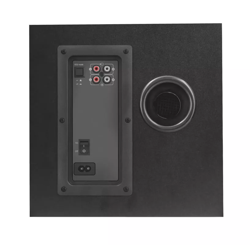 Выпустите в свет громкие звуки игры с помощью этого набора динамиков с пиковой мощностью 120 Вт. Сателлитные динамики обеспечивают оптимальное звучание в среднем и высоком диапазоне частот. Добавьте к этому еще деревянный сабвуфер с 7-дюймовым динамиком, который дает мощную глубину звукам вашей игры, и вы гарантированно получите весь спектр впечатлений от процесса игры.
