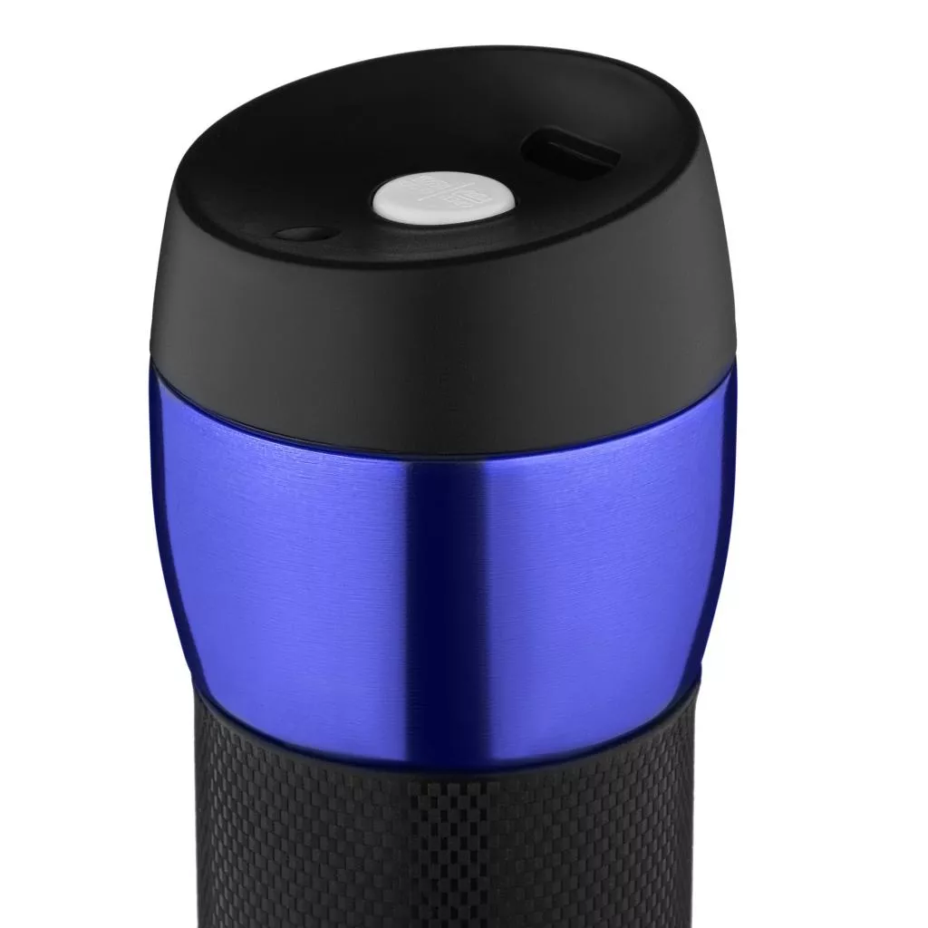 Термочашка на 450 мл с вакуумной технологией хранения температуры — до 8 часов для горячих напитков, и 12 часов для холодных. Для удобства предусмотрено силиконовое покрытие под ладонь. Внутренняя часть выполнена из нержавеющей стали 18/10. Нескользящая основа предотвращает переворачивание, а пластиковая крышка получила силиконовую прокладку и кнопку открытия отверстия для питья.