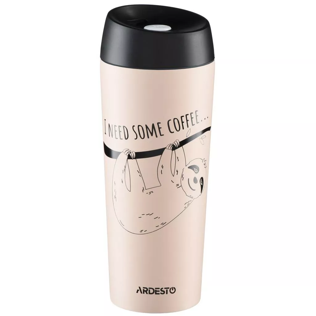 Термочашка на 450 мл с вакуумной технологией сохранения температуры — до 8 часов для горячих напитков и 12 часов для холодных. Внутренняя часть выполнена из нержавеющей стали 18/10. Нескользящая основа предотвращает переворачивание, а пластиковая крышка получила силиконовую прокладку и кнопку открытия отверстия для питья.