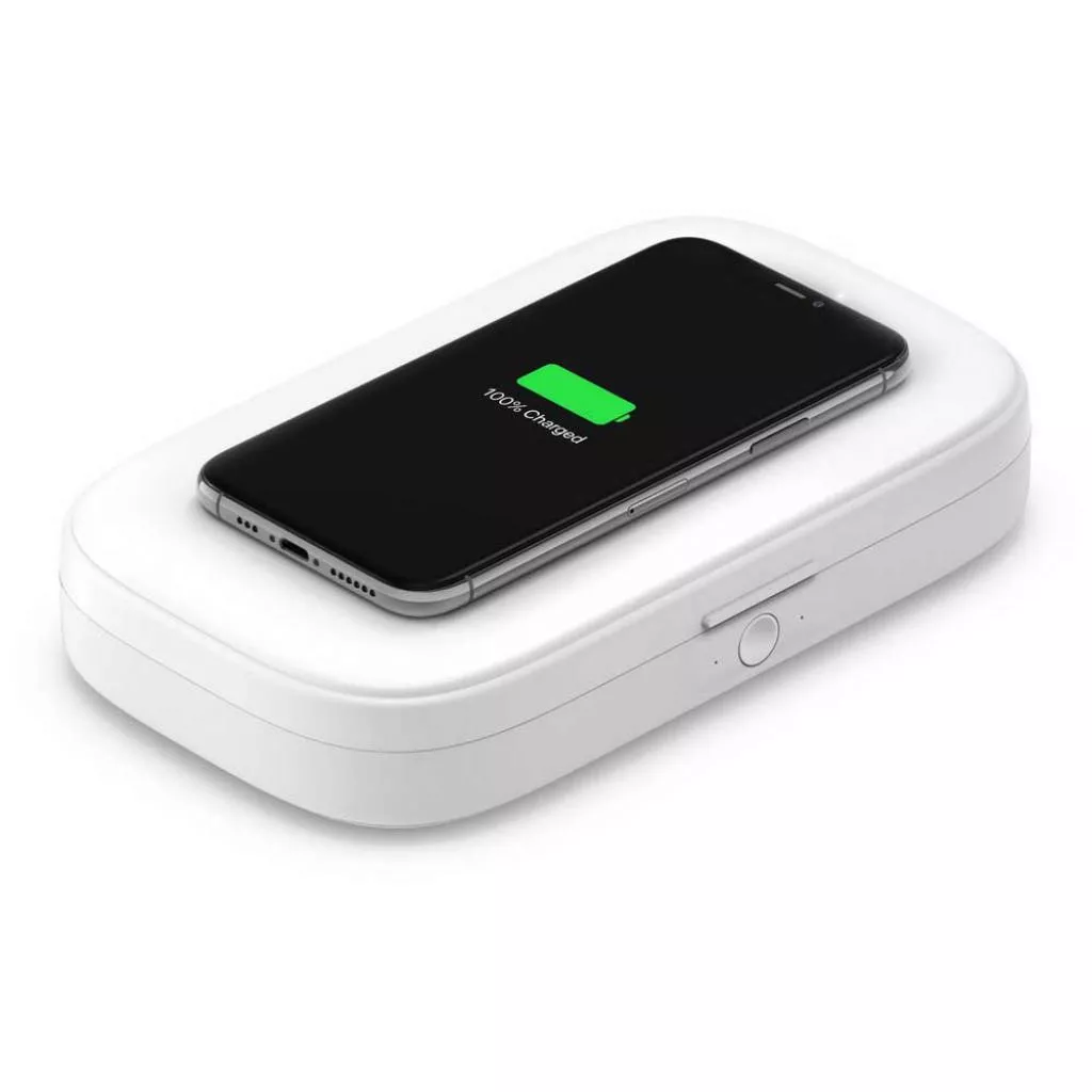 Просто поместите свой смартфон с поддержкой Qi на дезинфицирующее средство для зарядки. Это дает вам легкий доступ к вашему смартфону, в то время как другие предметы одновременно УФ-дезинфицируются.