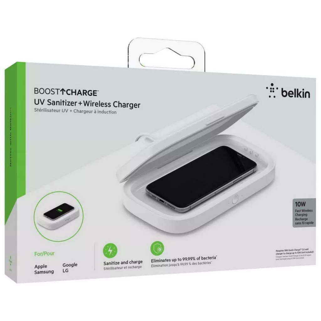 Наше УФ-дезинфицирующее средство работает как быстрое беспроводное зарядное устройство на 10 Вт, позволяя заряжать смартфон с поддержкой Qi, одновременно дезинфицируя другое устройство или непористый предмет, например ключи, карты, наличные деньги и кольца. Беспроводное зарядное устройство - это кейс, совместимый с чехлами для телефонов толщиной до 3 мм.