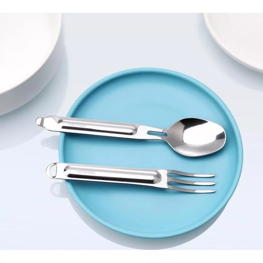Туристический набор (вилка+ложка) Nextool представляет собой универсальный комплект столовых приборов, необходимых для приема пищи. Вилка и ложка помогут есть на природе и в условиях, где нет полного комплекта столовых приспособлений, как твердые блюда, так и жидкие.