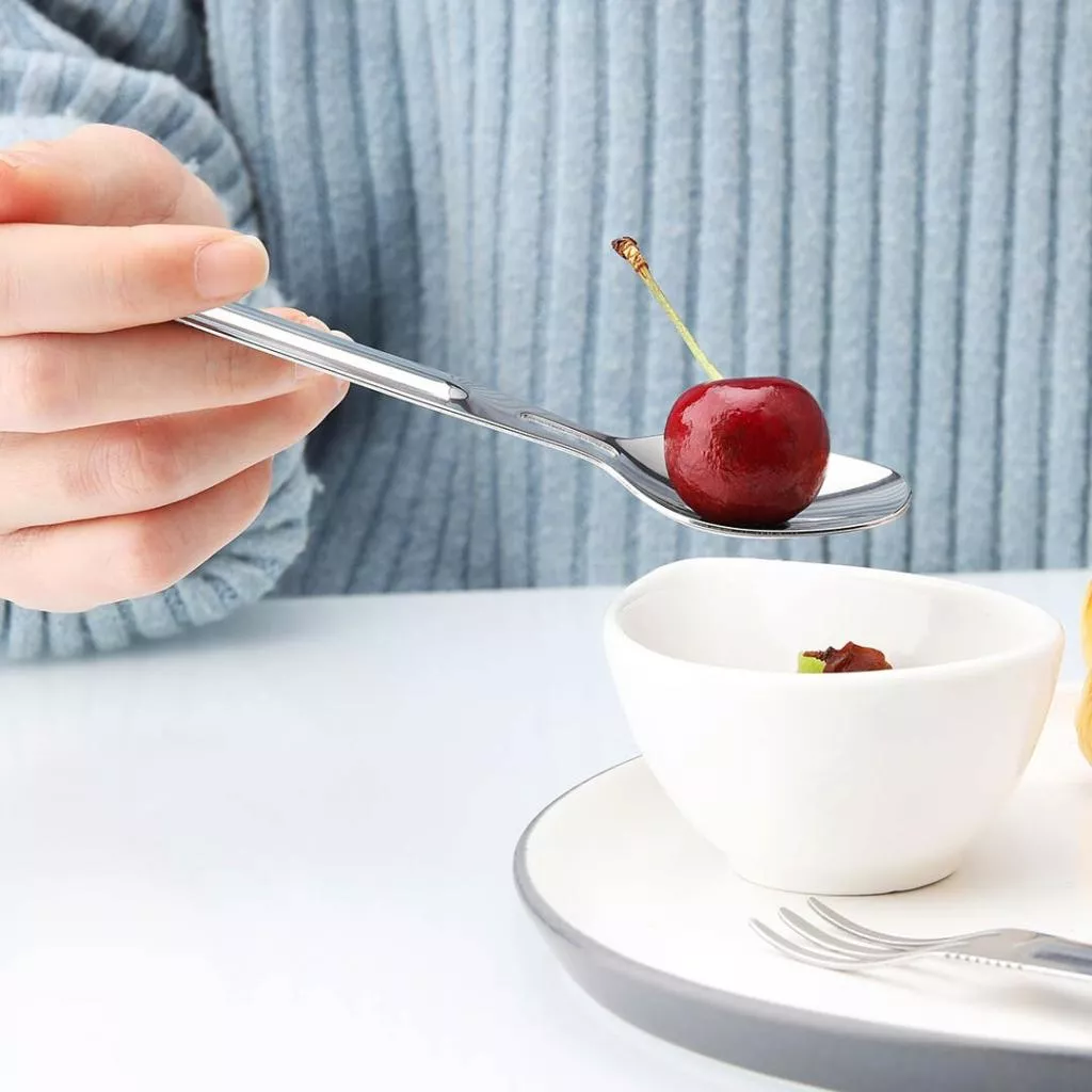 Вилка и ложка имеют оптимальные для комфортной эксплуатации размеры с обтекаемыми формами. Они безопасны при соприкосновении с ротовой полостью, не царапают губы, удобно удерживаются в ладони за счет оптимального веса столового прибора.
