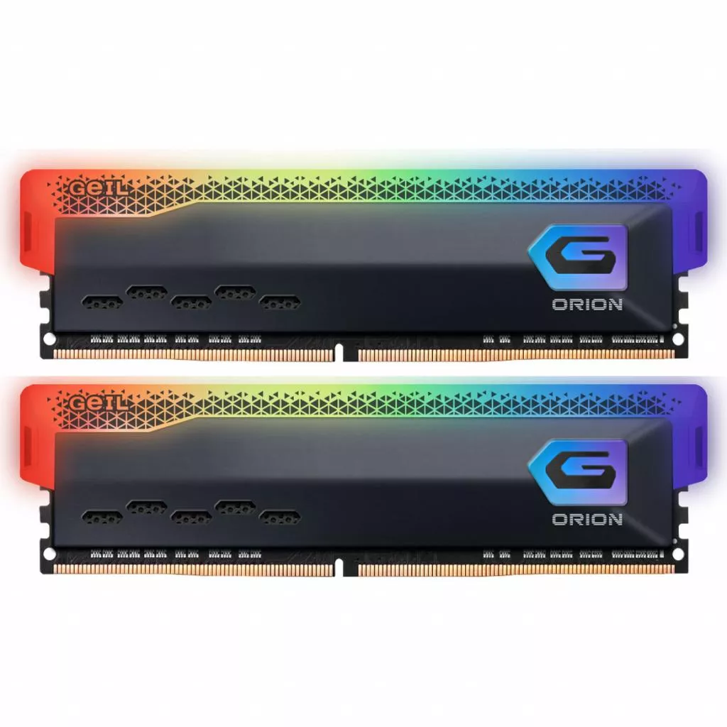 Комплект высокопроизводительной памяти GeIL Orion RGB состоит из 2-х модулей DDR4 общим объемом 32 ГБ, которые работают на частоте 3200 МГц.