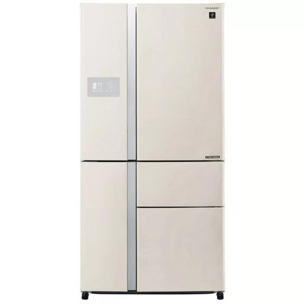Sharp SJ-PX830ABE – холодильник с комплектацией Side-by-Side от итальянского производителя Sharp. Такой большой и вместительны холодильник подойдет для большой семьи, ведь общий полезный объем его составляет 768 литров. Управляется такой интеллектуальный гаджет с помощью электронной сенсорной панели. Имеется также LED-дисплей, на котором отображаются все главные параметры устройства и возможность их изменить на усмотрение пользователя.