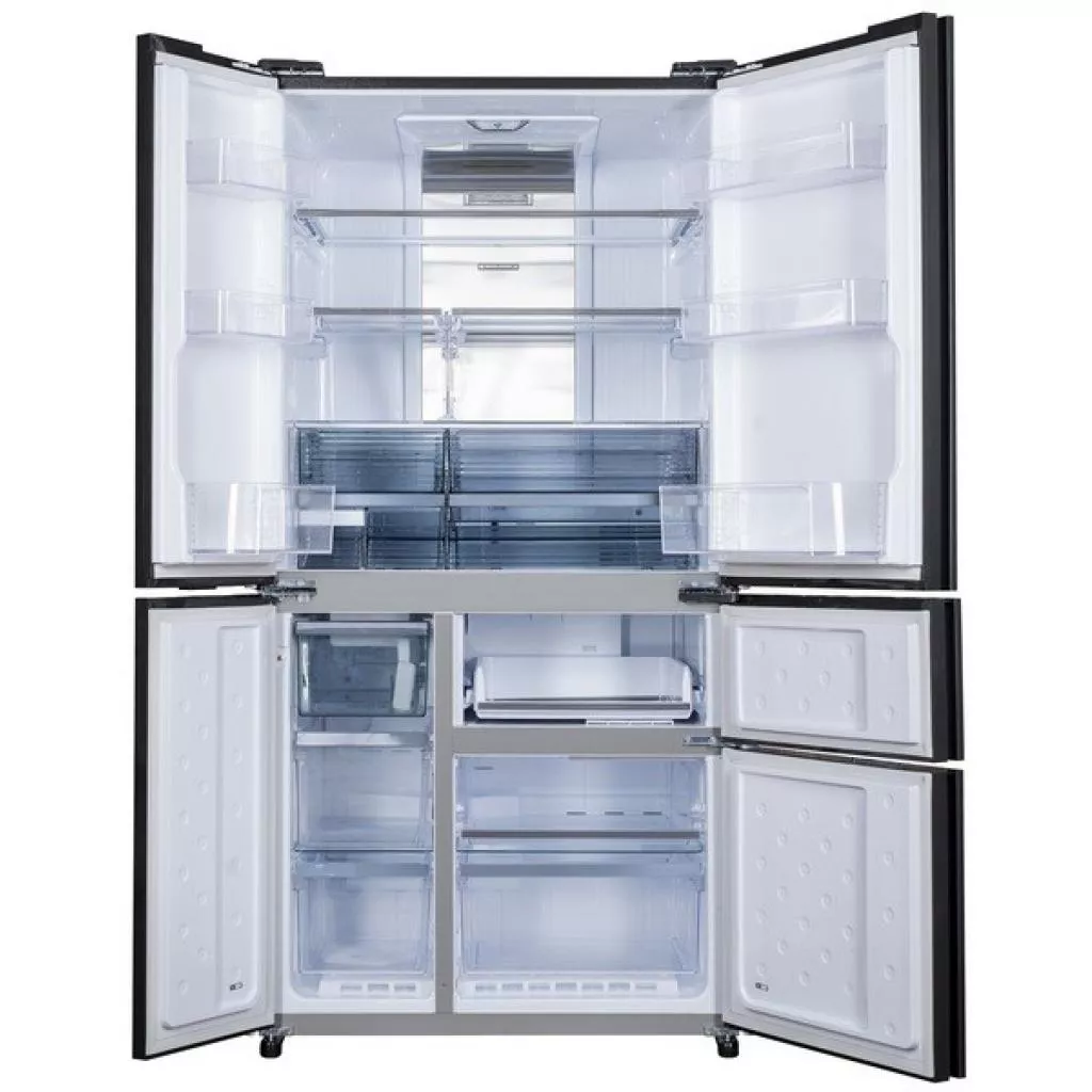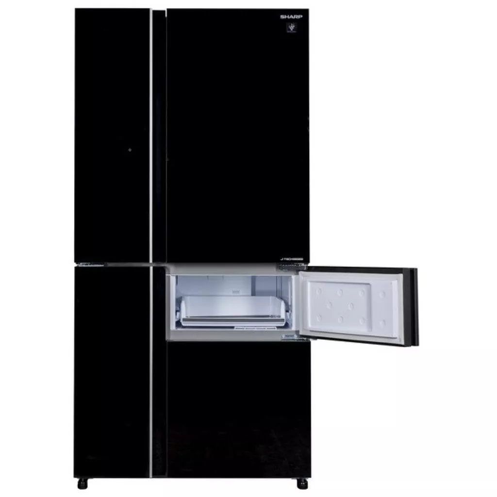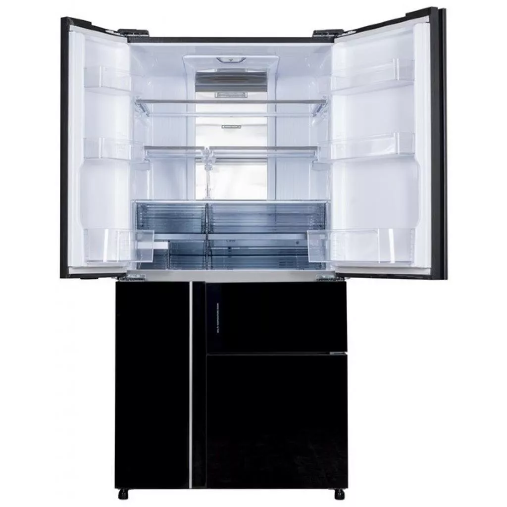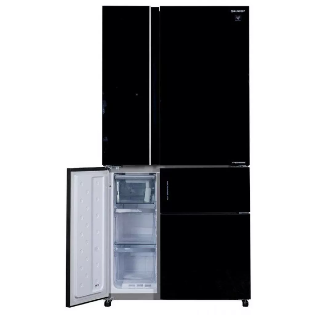 Sharp SJ-SX830ABK – многодверный холодильник от компании Sharp, который используется для хранения множества продуктов, так как общий полезный объем устройства составляет 768 литров. Холодильник имеет 5 дверей – 2 двери на холодильную камеру и 2 на морозильную, а также ящик морозильной камеры. Холодильник управляется электронным путем, имеет дисплей и современную эргономичную структуру внутри.