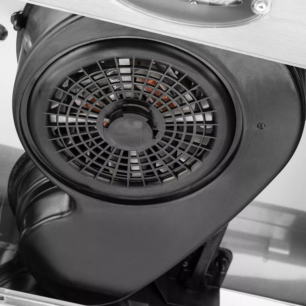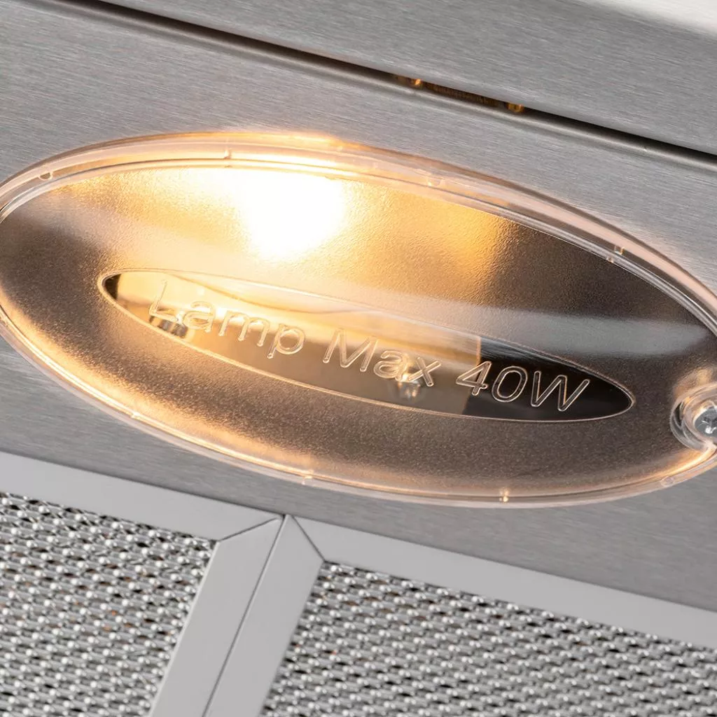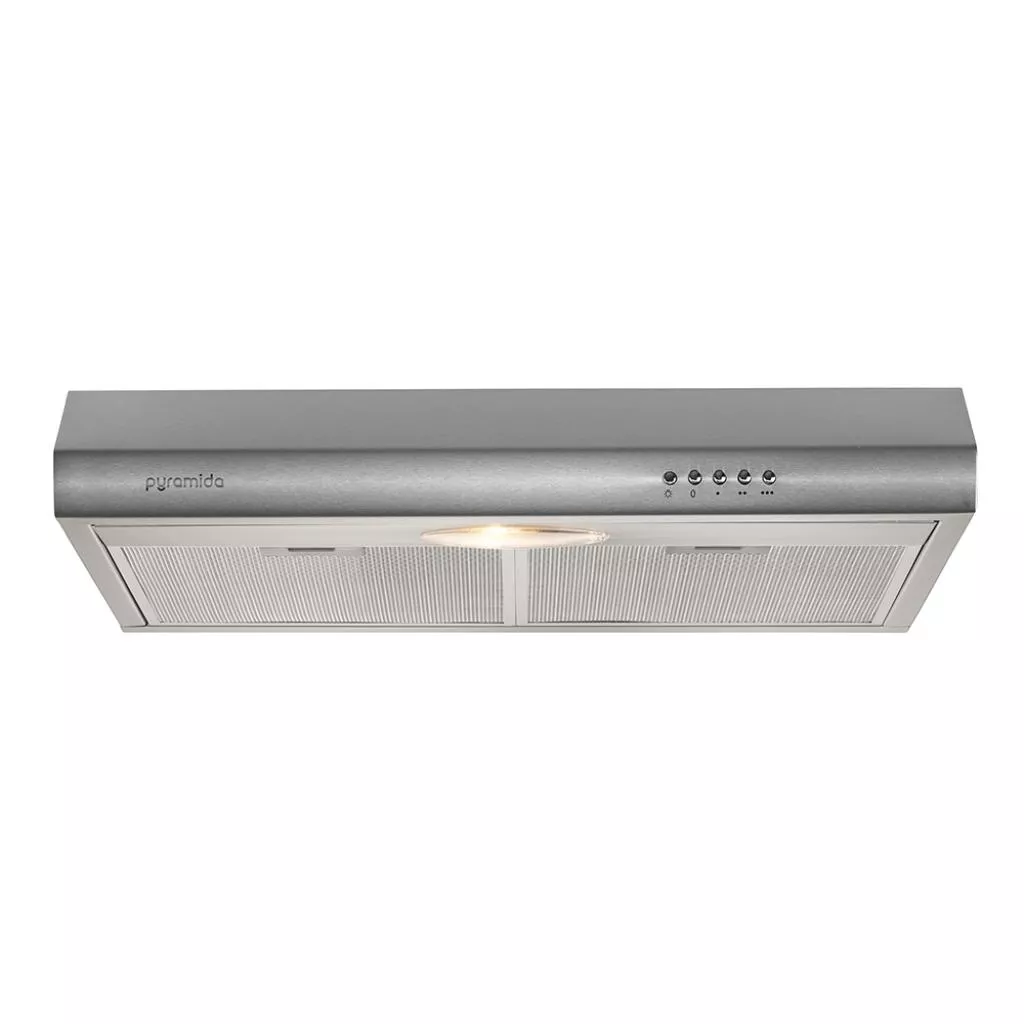 Pyramida UX 50 имеет мощный и производительный мотор на 172 Вт. Он надежно зашищен от проникновения жира и пыли жироулавливающим фильтром, который состоит из 5 уровней защиты. Такой фильтр легко снимается для очистки, его также можно мыть в посудомоечной машине. Вытяжка имеет три скорости, переключаются все параметры с помощью удобной панели управления. Устройство работает исключительно на рециркуляцию воздуха.