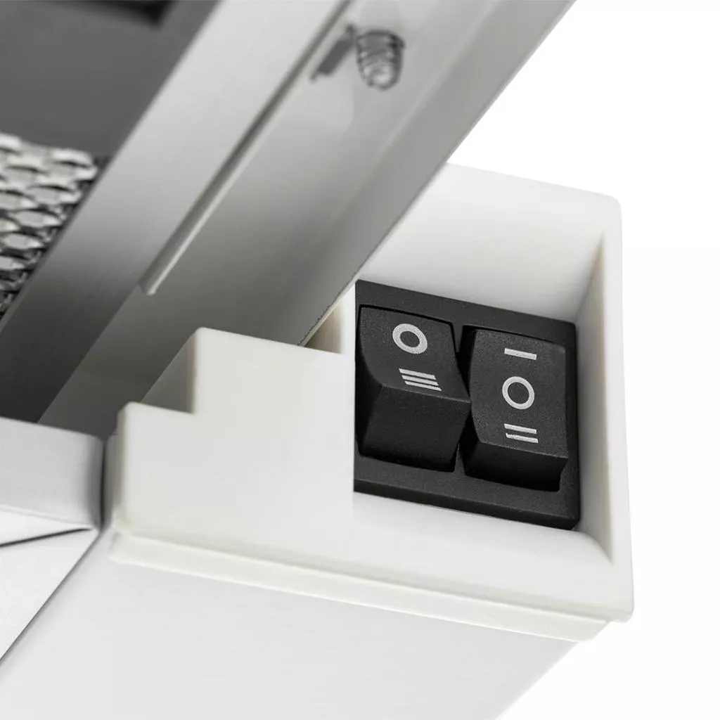 Простая и интуитивно понятная панель управления обеспечит комфорт эксплуатации вытяжки. Эргономичные механические клавиши помогут вам быстро переключаться между скоростями и режимами работы, а также включать подсветку