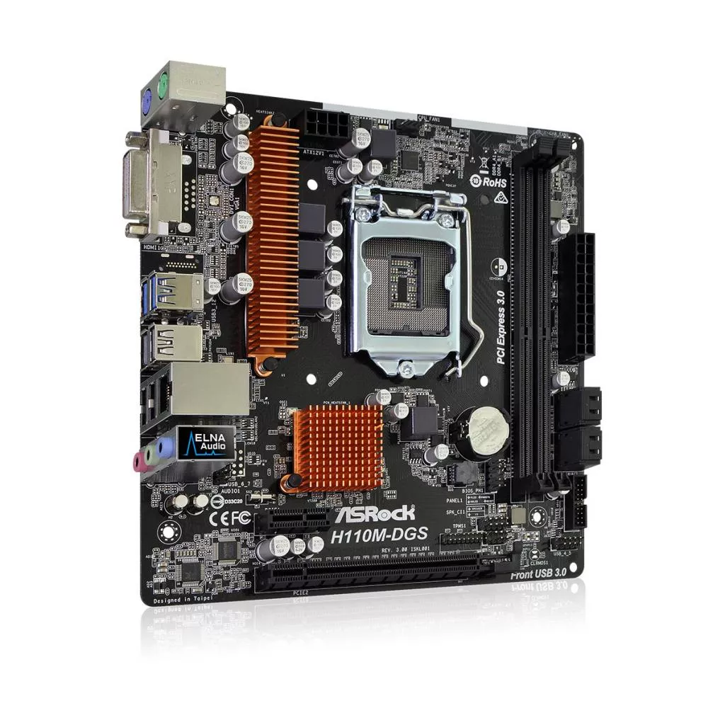H110M-DGS — новейшая материнская плата от ASRock, спроектирована для совместной работы с процессорами Intel 6-поколения и поддержкой прогрессивного ОЗУ DDR4.