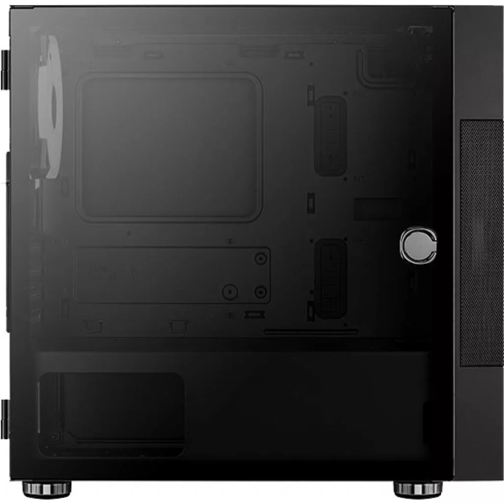 Прозрачная боковая панель из закалённого стекла оборудована удобным механизмом с петлями и ручкой, что дает возможность без проблем открывать корпус и видеть все его компоненты «за работой».