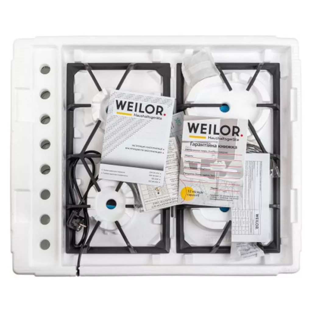 - Варочные поверхности Weilor оснащен и укомплектованы системой «газ-контроль», которая автоматически блокирует подачу горючего вещества при отсутствии пламени и обеспечивает максимальную безопасность использование (эксплуатации) прибора.