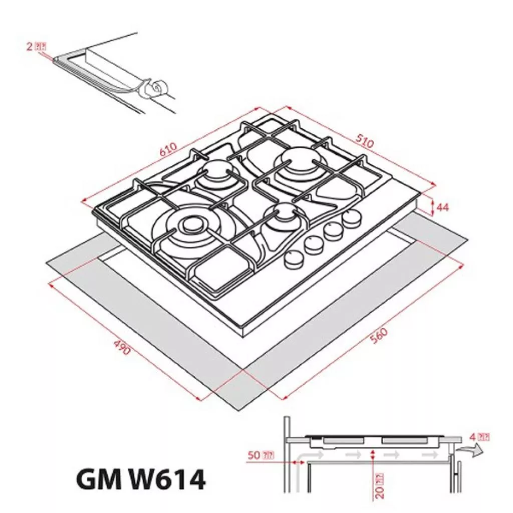 | Диаметр и мощность конфорок | Задняя 2 кВт, Задняя левая 2.9 кВт, Левая 3.8 кВт, Передняя 1 кВт |