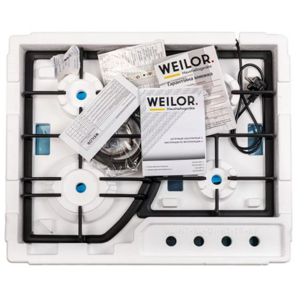 - Варочные поверхности Weilor оснащен и укомплектованы системой «газ-контроль», которая автоматически блокирует подачу горючего вещества при отсутствии пламени и обеспечивает максимальную безопасность использование (эксплуатации) прибора.
