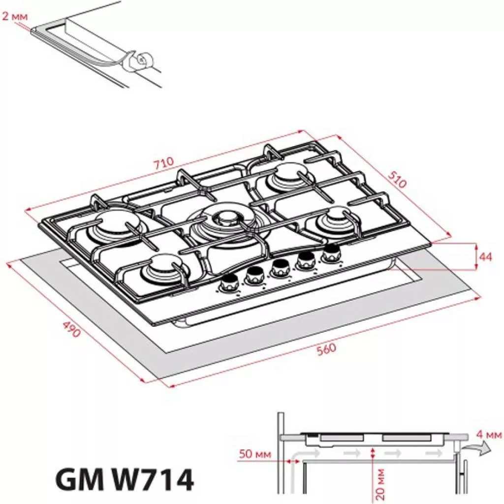 Размеры ниши для встраивания | 4.4 х 56 х 49 см |