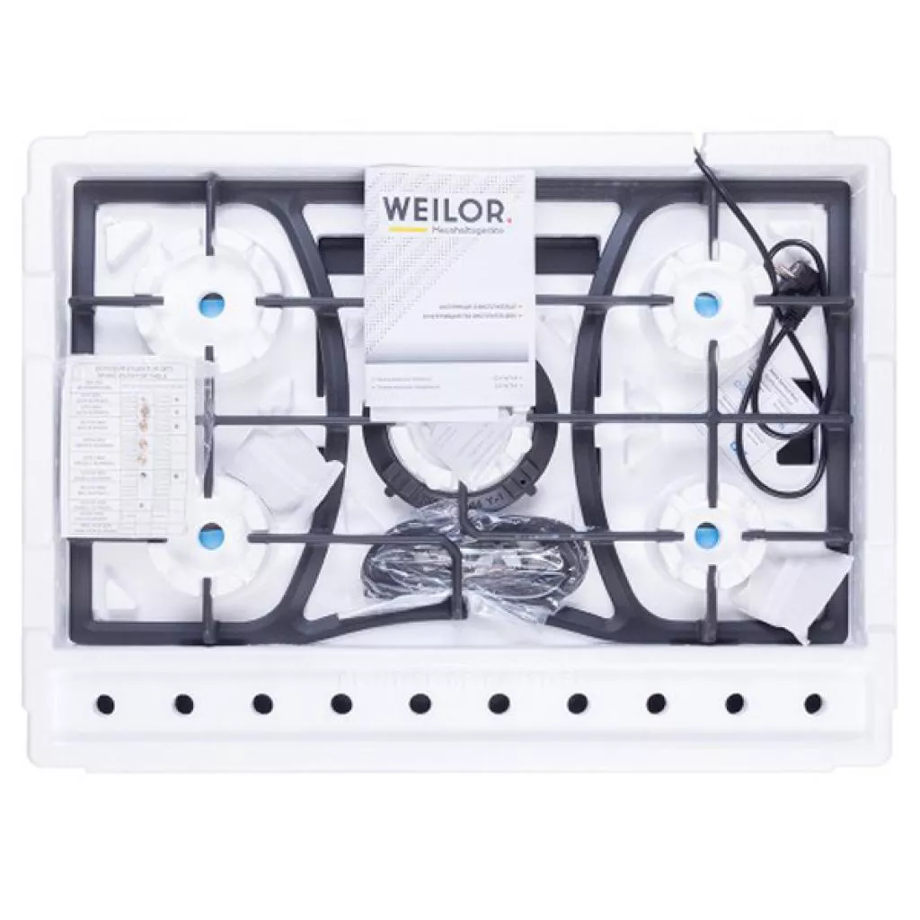 - Варочные поверхности Weilor оснащен и укомплектованы системой «газ-контроль», которая автоматически блокирует подачу горючего вещества при отсутствии пламени и обеспечивает максимальную безопасность использование (эксплуатации) прибора.