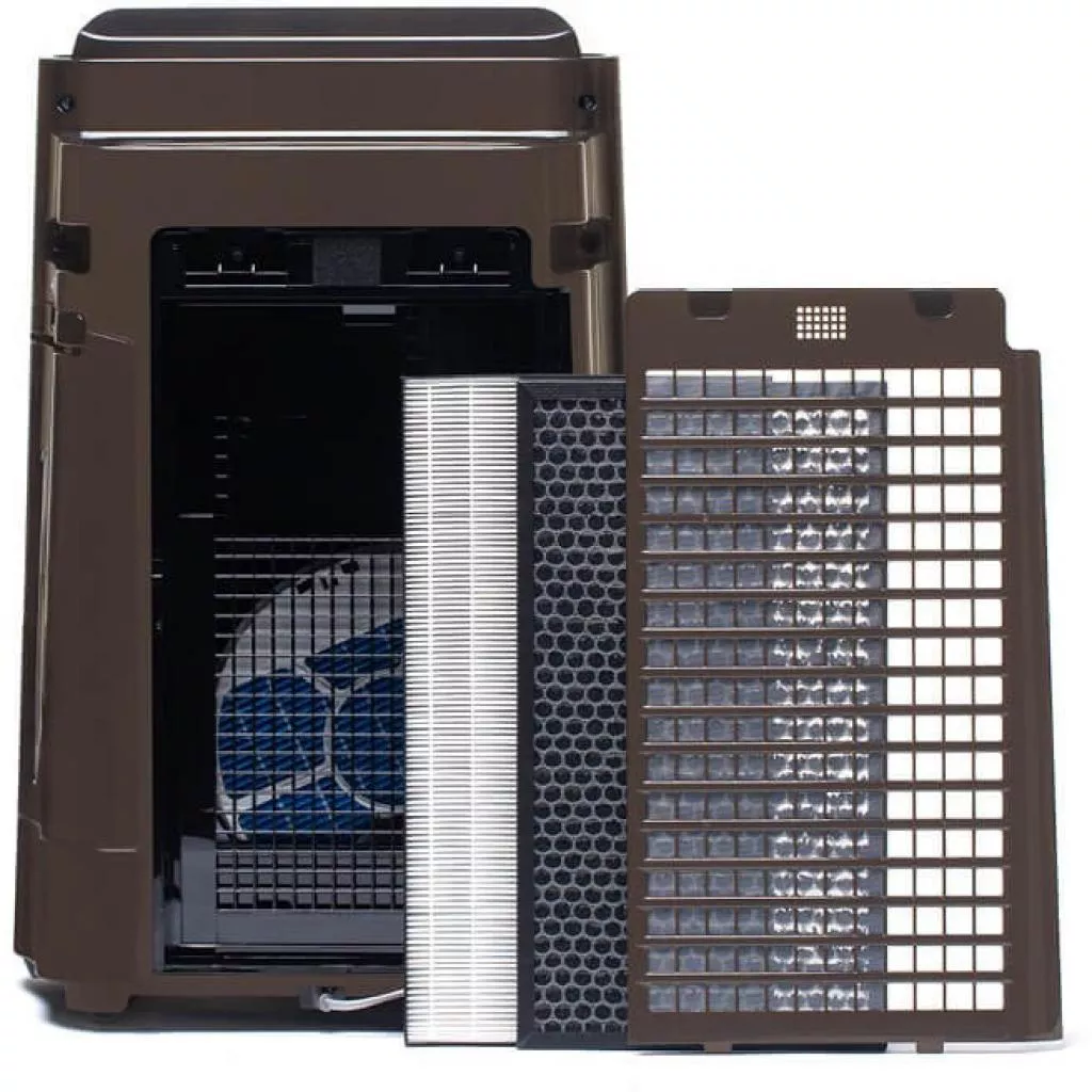 Фильтрация осуществляется несколькими типами устройств: угольным дезодорирующим фильтром, фильтром тонкой очистки HEPA и предварительным фильтром.
