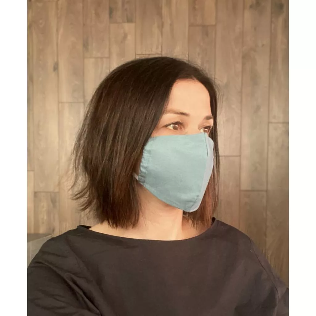 Маска тканевая многоразовая трехслойная для лица, с гибкой фиксацией на переносице, крепления - резинки. Резинки можно завязать на удобную длину, обрезать лишнее и при желании спрятать узелок в шов. Стирать рекомендуется деликатными средствами без резкого запаха, для последующего комфортного использование (эксплуатации), машинная стирка в деликатном режиме или ручная стирка. Можно отпаривать. Без фильтров и пропитки. Ткань хлопок. Карман для фильтра. Маска косметическая, нестерильная, не медицинская.