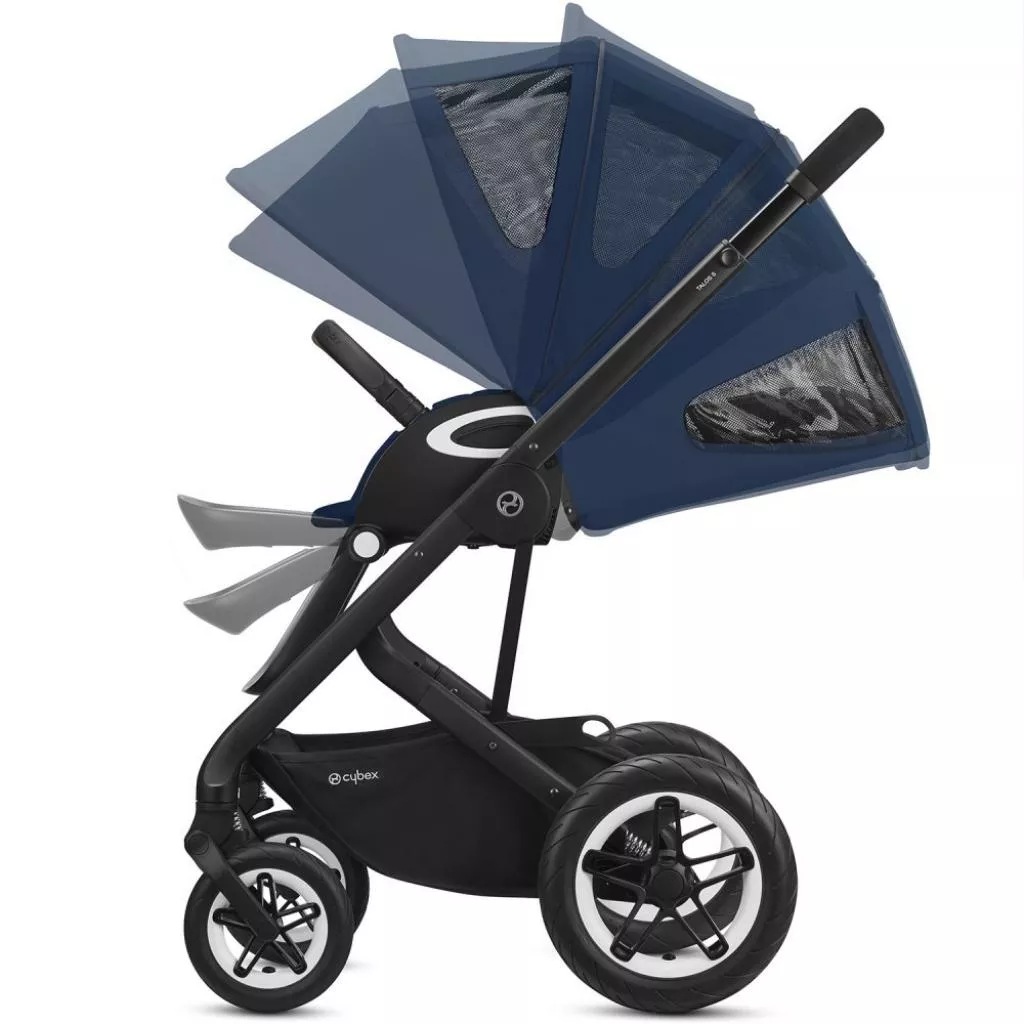 Коляска Cybex Talos S Lux с чёрной рамой роскошна не только в названии. В Talos S Lux могут влюбиться и малыш, и его родитель, и это будет полностью оправдано. Cybex Talos S Lux объединила в себе комфорт, дизайн и современные тенденции. Идеально подойдет дня наших дорог и климата: большие широкие колеса, прочная рама, подвеска всех колес, большой капюшон и удобное сидение. Прогулочный блок имеет возможность горизонтально опустить спинку, выбрать одно из двух направлений движений. Большой капюшон защитит как от ветра и дождя, так и от солнца. Мягкое сидение с боковой защитой, бампером и ремнями создает комфортные и безопасные поездки. Ручка для родителей регулируется по высоте, подножку можно поднять.