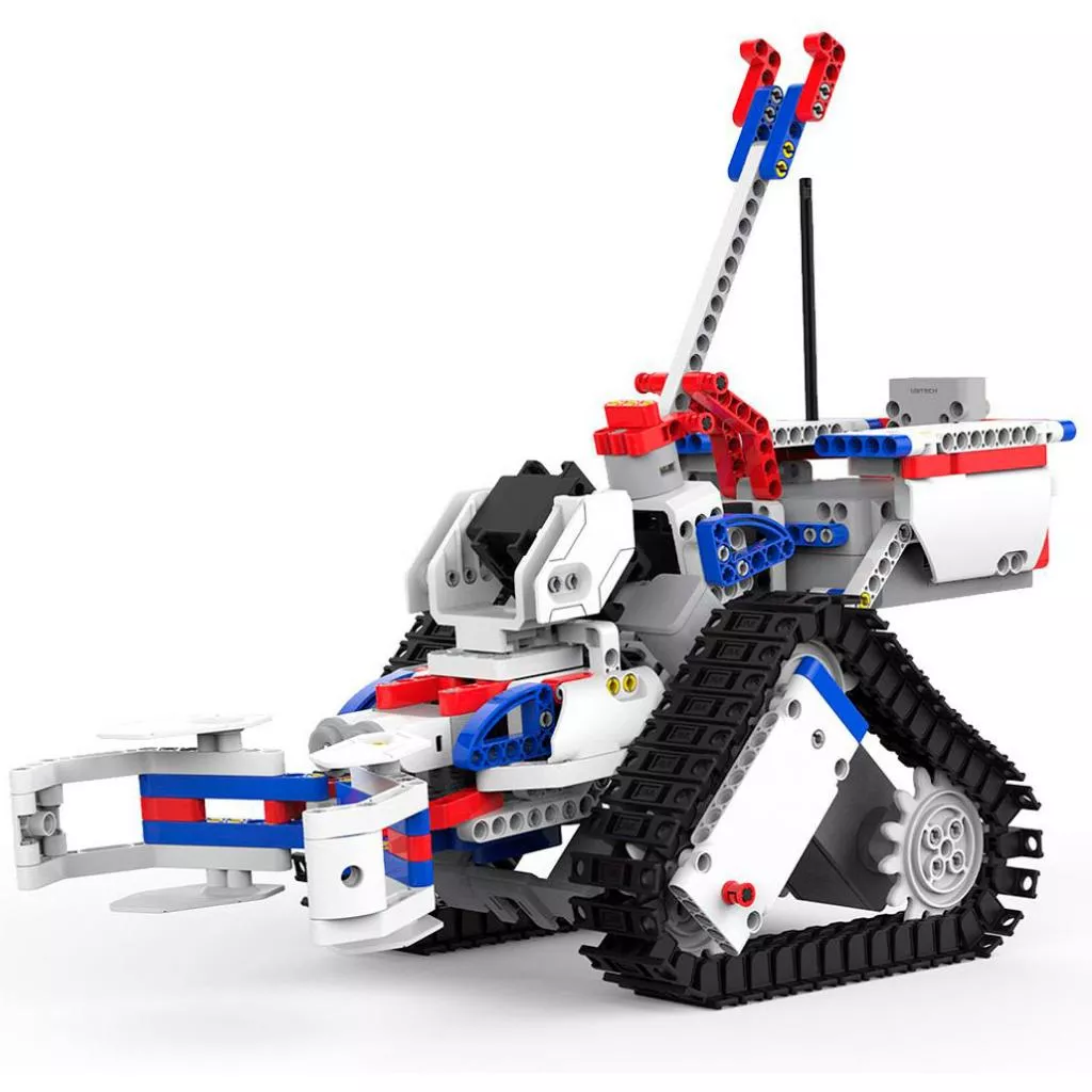 Набор Jimu CourtBot состоит из 507 деталей, с помощью которых можно собрать трех роботов на выбор: ShootBOT - носит и бросает мяч; DunkBot - держит и бросает мяч подвижными передними конечностями; DumperBot - держит и перемещает объекты. В набор входят 3 мячика и 6 игровых карточек.