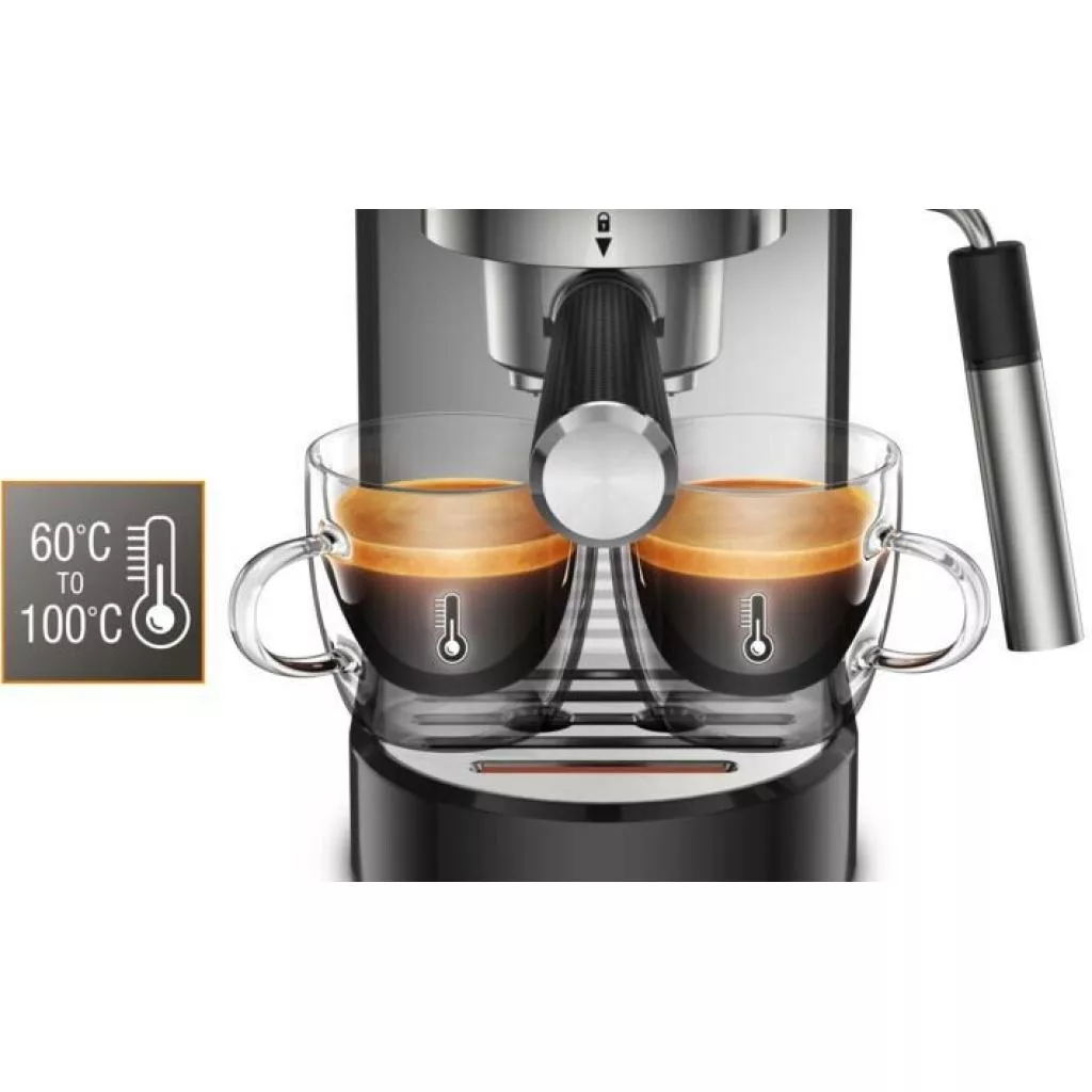 | Функции | автоотключение, индикатор уровня воды, капучинатор, одновременное приготовление двух чашек кофе, подача горячей воды, съемный поддон для капель |