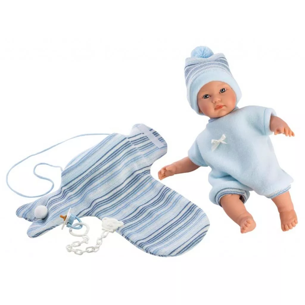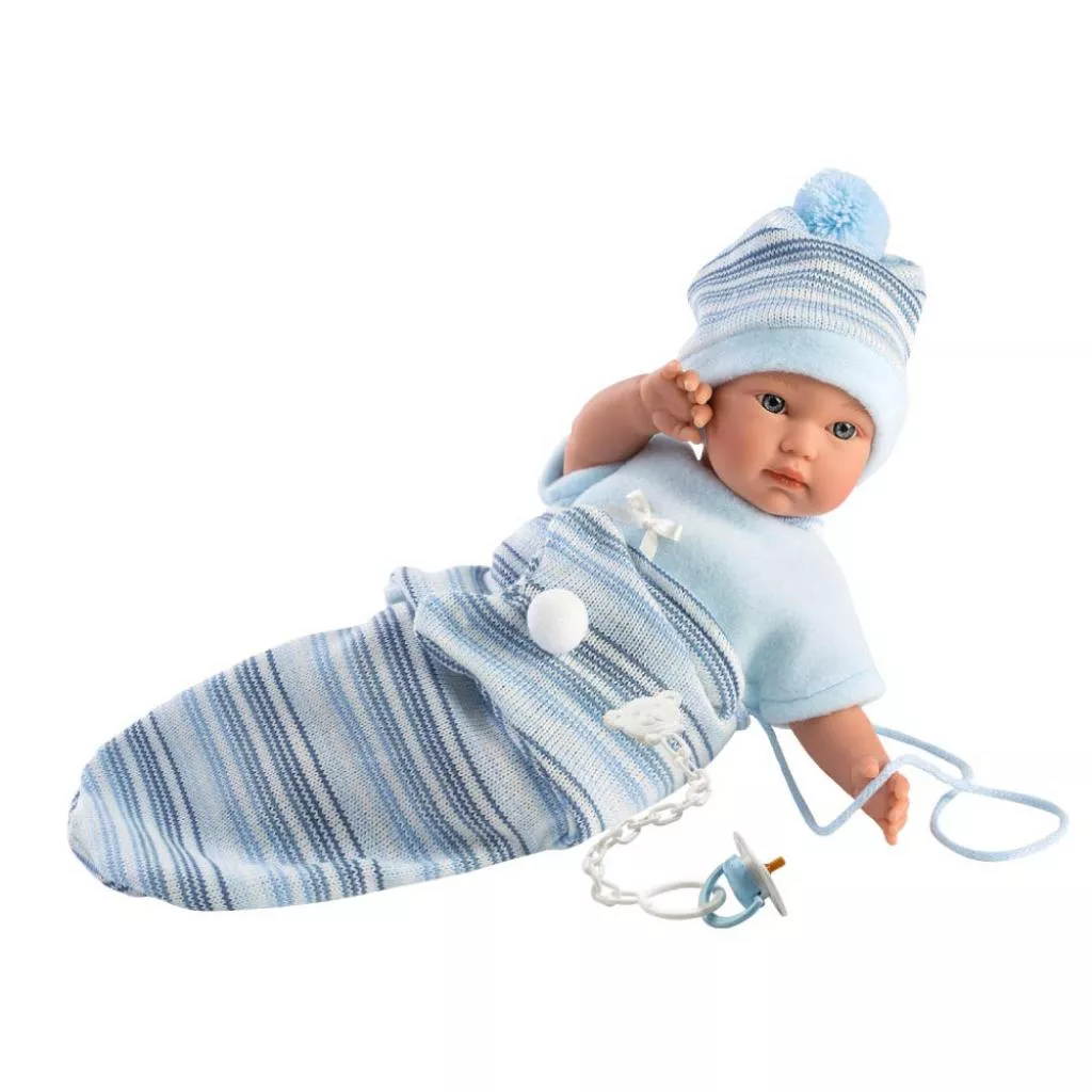 Изысканная кукла Куки, что плачет и зовет маму, папу. В комплект входит слинг в виде сумки и соска, прикрепленная к кукле.