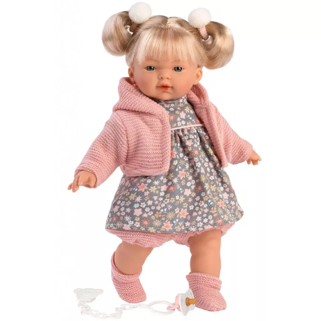 Интересные куклы Llorens производятся испанскими кукольниками уже несколько десятилетий. Айтана - хорошая девочка со светлыми волосами. Ее волосы хорошо прошита по всей голове, поэтому его можно расчесывать и не бояться. Она умеет звать маму и папу, и плакать, если забрать у нее пустышку. Звук блокируется. Тельце мягкое текстильное. Ручки, ножки и голова сделаны из винила.