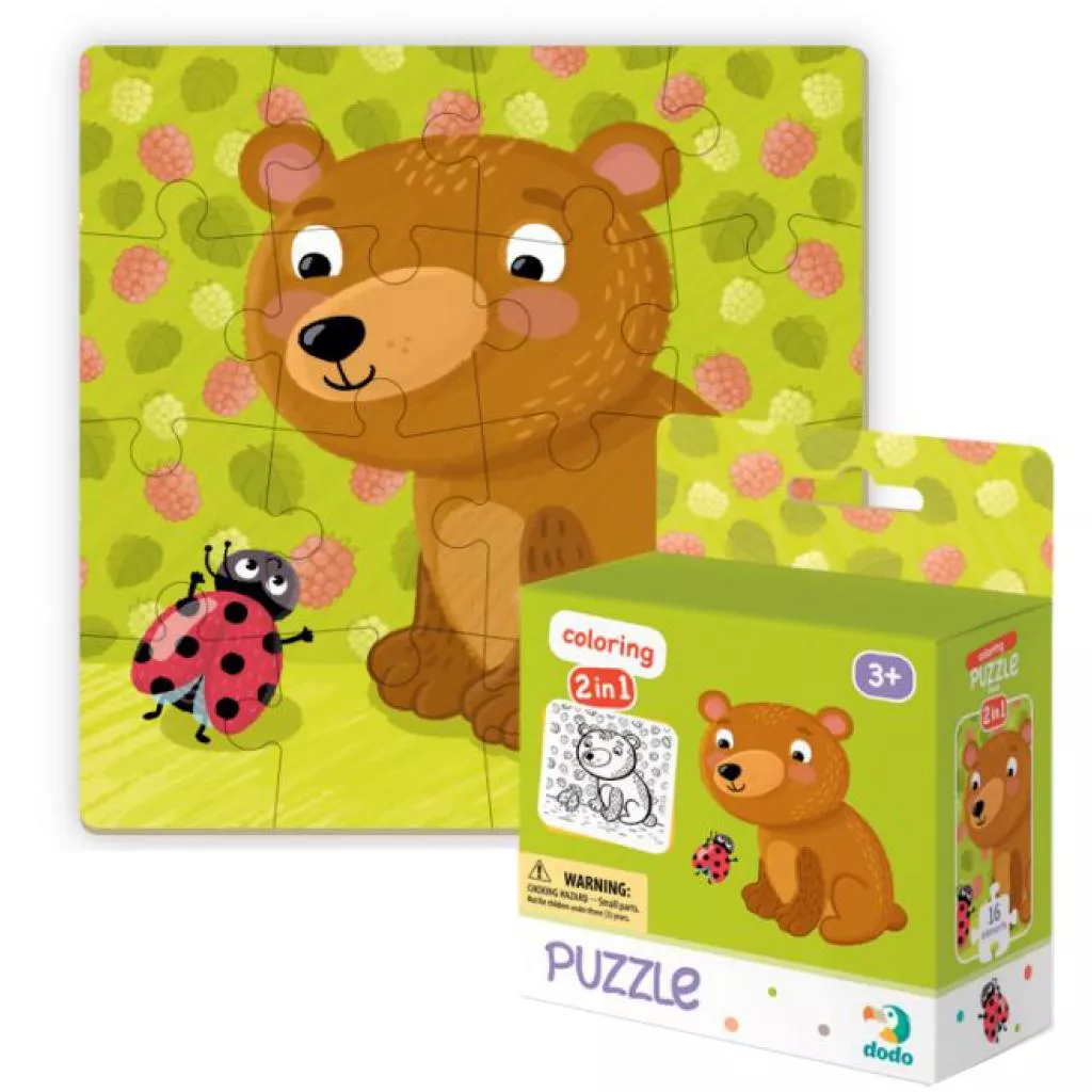 Пазл DoDo 2 в 1 Медвежонок 16 элементов + раскраска.