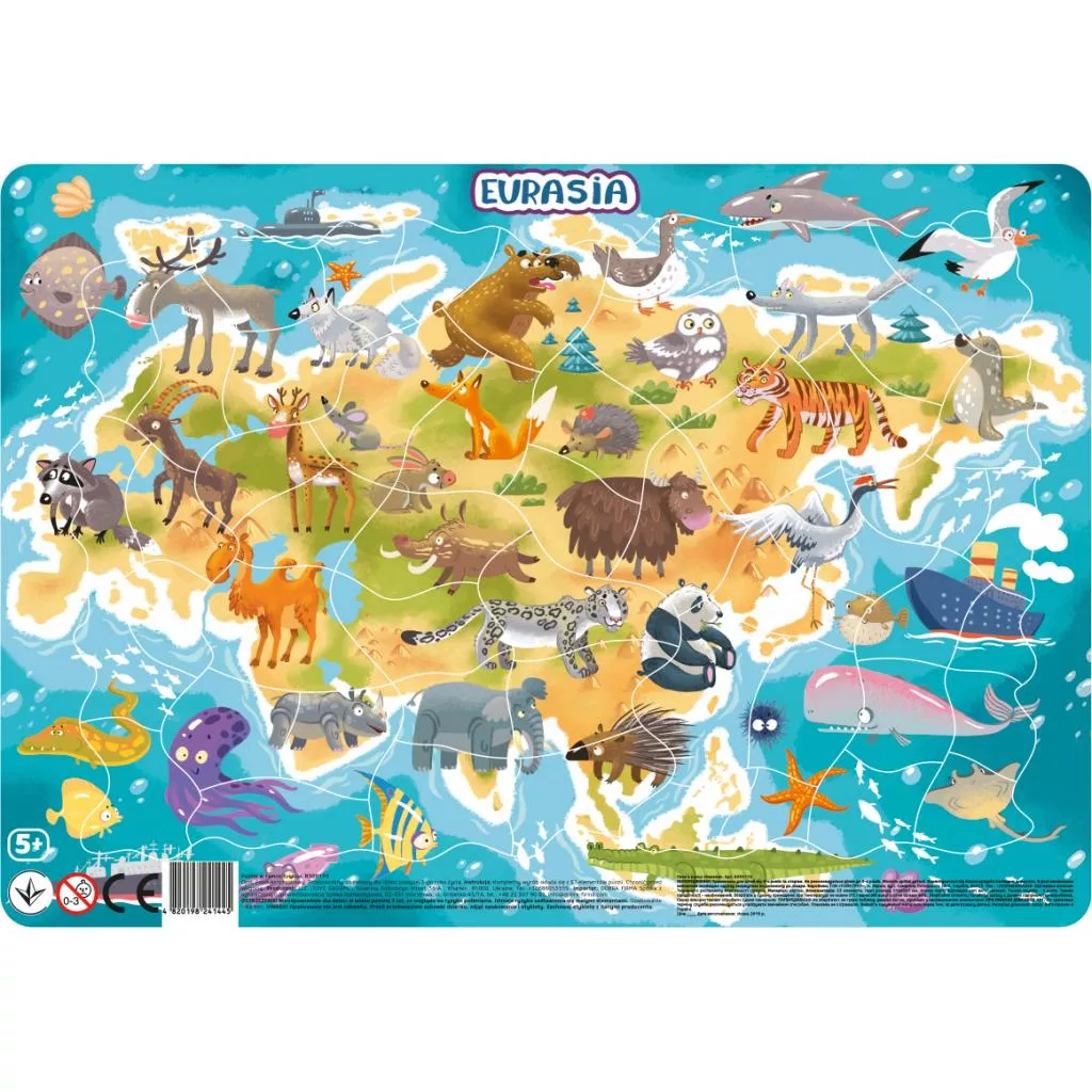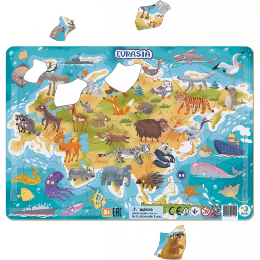 Пазл с рамкой из очень плотного картона, на подложке есть контур элементов, чтобы малышу было легче сложить пазл.