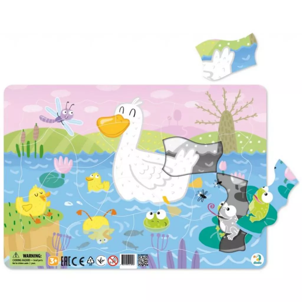 Пазл с рамкой из очень плотного картона, на подложке есть контур элементов, чтобы малышу было легче сложить пазл.