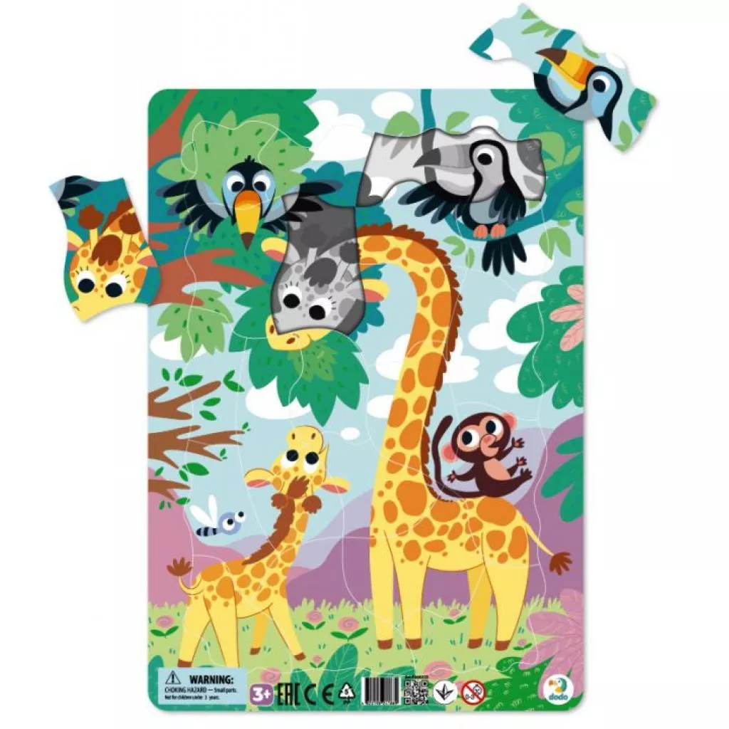 Пазл с рамкой DoDo Жирафы порадует вашего ребенка яркой картинкой. Задачей ребенка будет подбор пазлов в правильной последовательности, а это и великолепное развлечение и развивающая игра. На подложке есть черно-белый рисунок, чтобы малышу было легче сложить пазл. Подойдет для девочек и мальчиков от 3 лет.