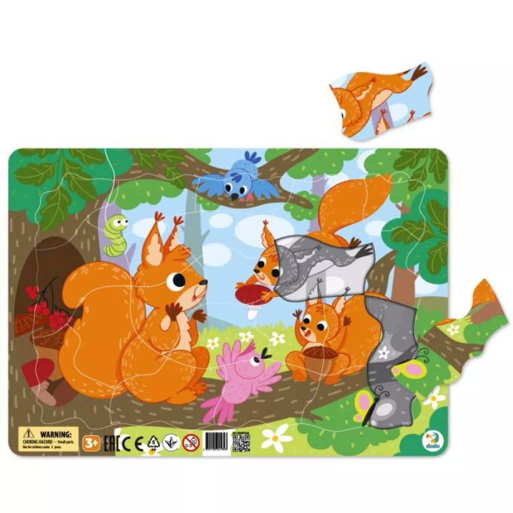 Пазл с рамкой DoDo Белочки порадует вашего ребенка яркой картинкой. Задачей ребенка будет подбор пазлов в правильной последовательности, а это и великолепное развлечение и развивающая игра. На подложке есть черно-белый рисунок, чтобы малышу было легче сложить пазл. Подойдет для девочек и мальчиков от 3 лет.