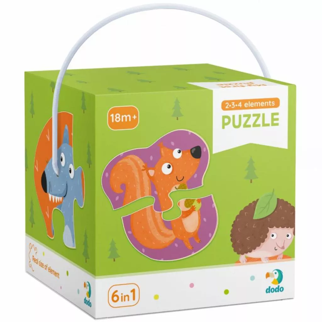 В наборе 6 пазлов из 2, 3 и 4 элементов.
