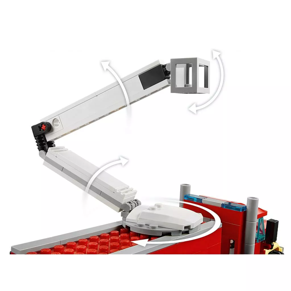 Бам! Какой кошмар! Учёный пролил кофе, и в научной лаборатории начался пожар! Присоединяйтесь к героям сериала «ЛЕГО Сити: приключения» Бобу и Саре Фельдман, которые спешат на пожар в городском индустриальном комплексе. Приведите крутой пожарный грузовик на место и отправьте в бой с огнём пожарного робота Тости с его мощной водяной пушкой. Затем берите шланг, забирайтесь в люльку подъёмника и помогите пожарным LEGO City спасти положение! Пожарная машина оснащен и укомплектована рабочим подъемником.