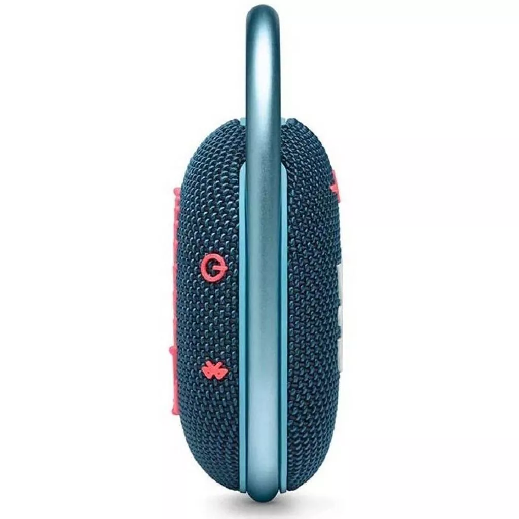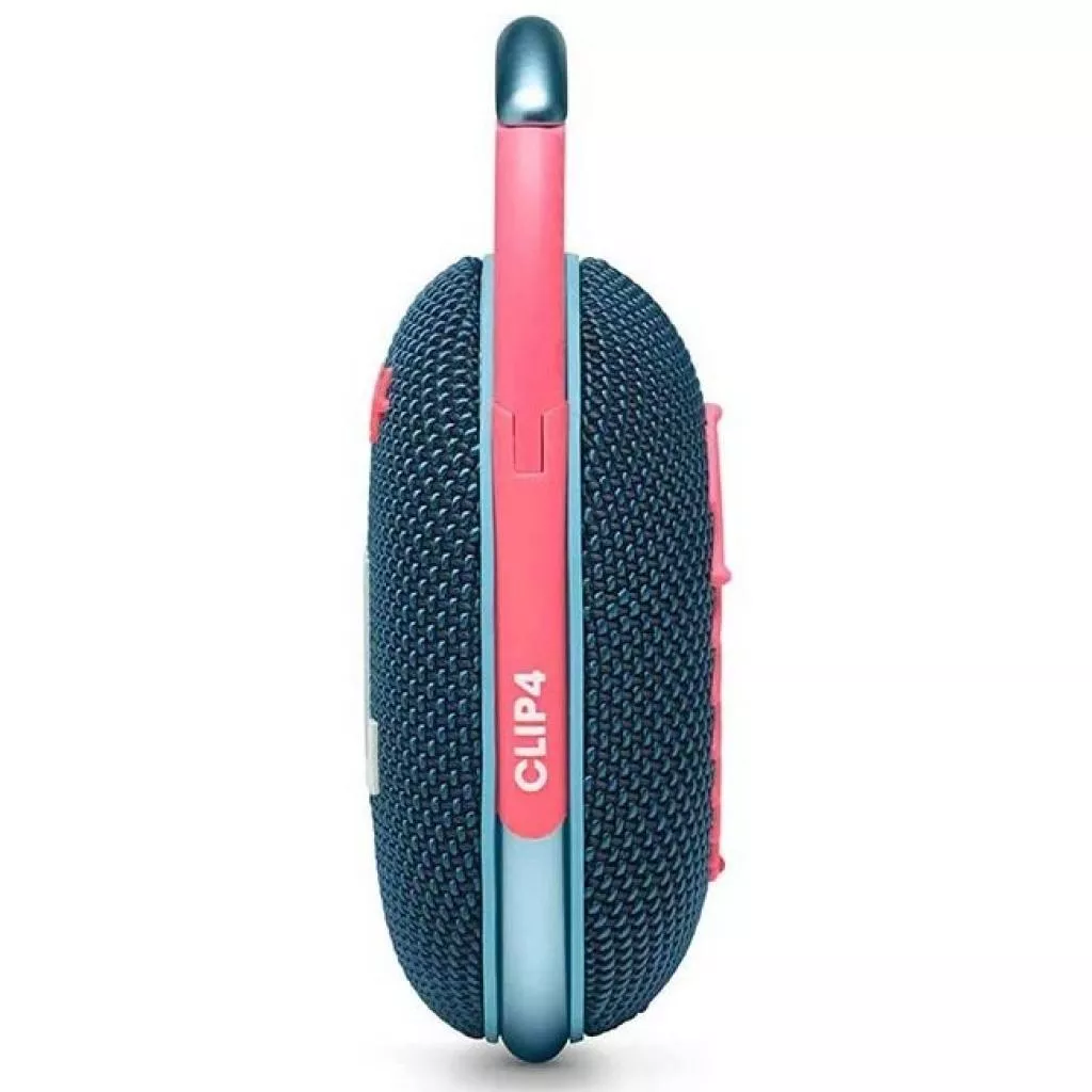 JBL Clip 4 — небольшая и компактная портативная колонка с частотным диапазоном 100 Гц — 20 кГц и мощностью 5 Вт. Колонка демонстрирует объемный звук и довольно высокое качество звучания. Акустика имеет Уровень (степень) защиты IP67. Устройство защищено от попадания пыли и имеет прочную водонепроницаемую конструкцию. Встроенный емкостной аккумулятор, обеспечивает воспроизведение любимых музыкальных композиций на протяжении восьми часов без подзарядки.