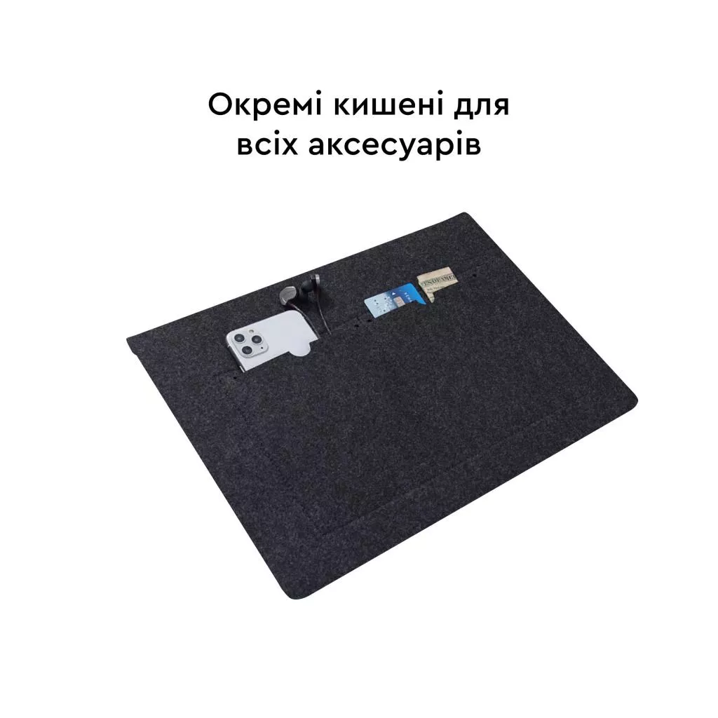 Особенностью чехла из фетра для нотбук 13,3 "является наличие дополнительных отделений для других ваших гаджетов. Вы можете с легкостью поместить во вторую передний карман ваш планшет, а в задние карманы - смартфон, наушники, кредитные карточки и другие мелочи.