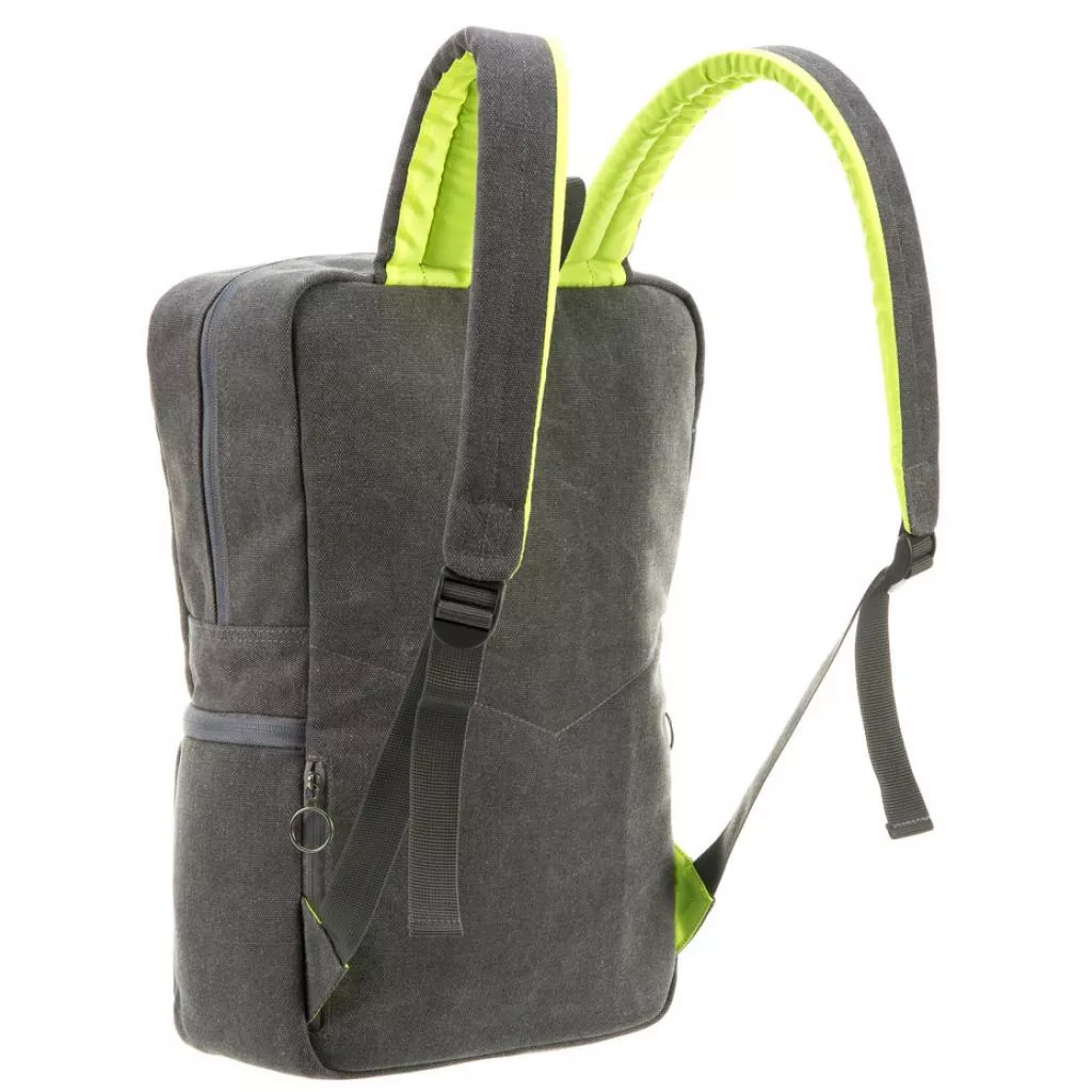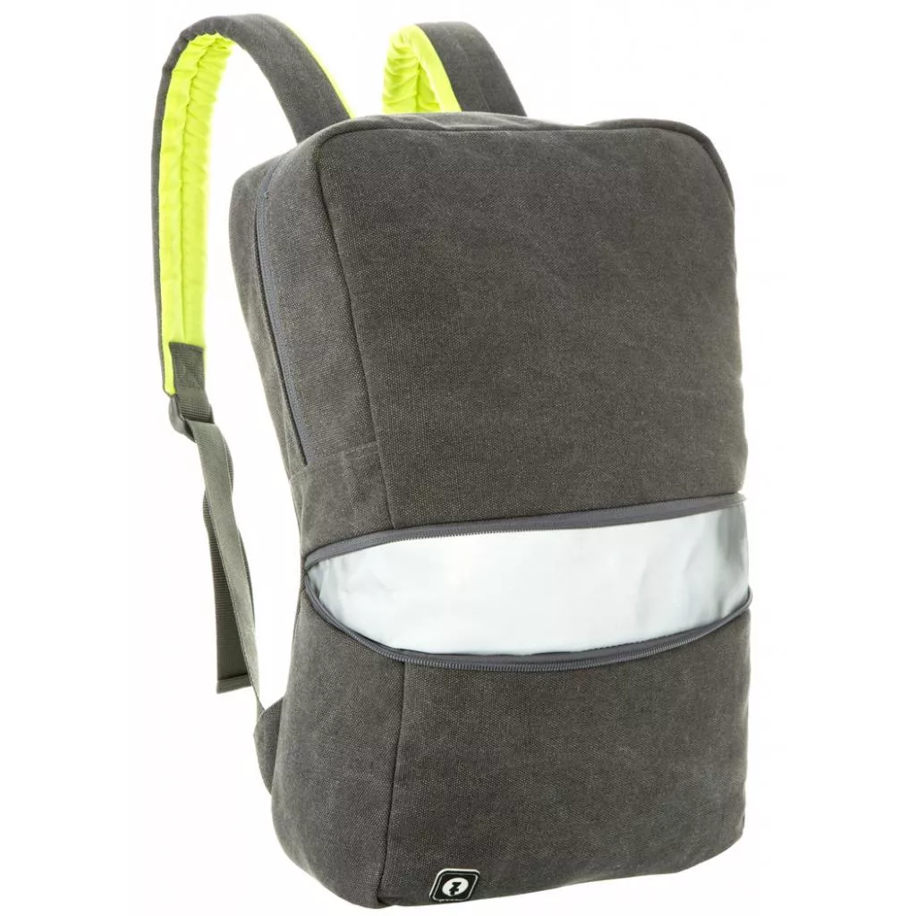 Для изготовления рюкзака используется износостойкая холщовая ткань с элементами из ярко-желтого полиэстера.