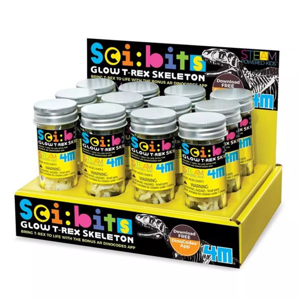 Набор для исследований Светящийся скелет тираннозавра – это закрытая пробирка с игрушечными останками динозавра, которые могут светится в темноте. Из них необходимо собрать макет скелета доисторического животного. Развивающий и познавательный набор оценят любители науки от 5 лет.