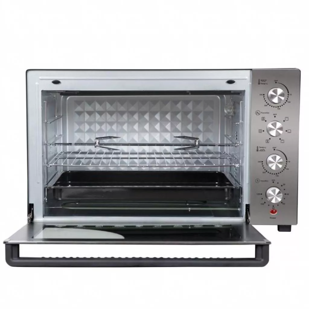 На ровную поверхность стола прибор надежно устанавливается благодаря нескользящим ножкам. Дверца электропечи открывается легко и плавно с помощью горизонтальной ручки.
