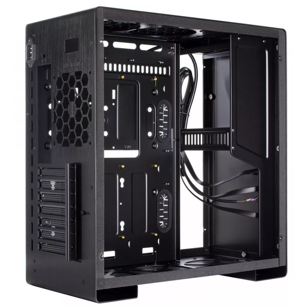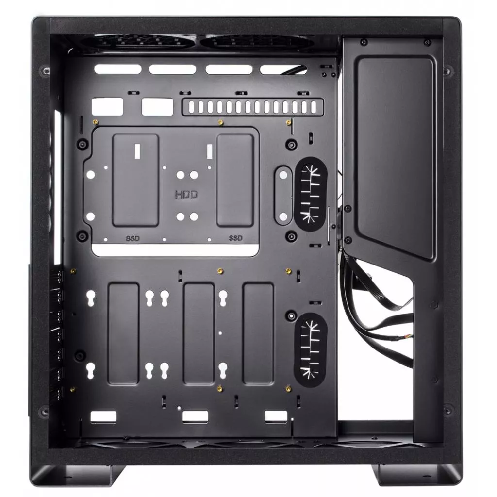 Из коробки корпус QUBE Griffin поставляется без предустановленных вентиляторов. Пользователь по желанию сможет инсталлировать до 6 кулеров: снизу 3x120 мм; сверху 2x120 мм; сзади 1x120 мм. Благодаря продуманной внутренней конструкции воздушный поток от вращающихся вентиляторов будет способствовать оптимальному охлаждению установленных компонентов.