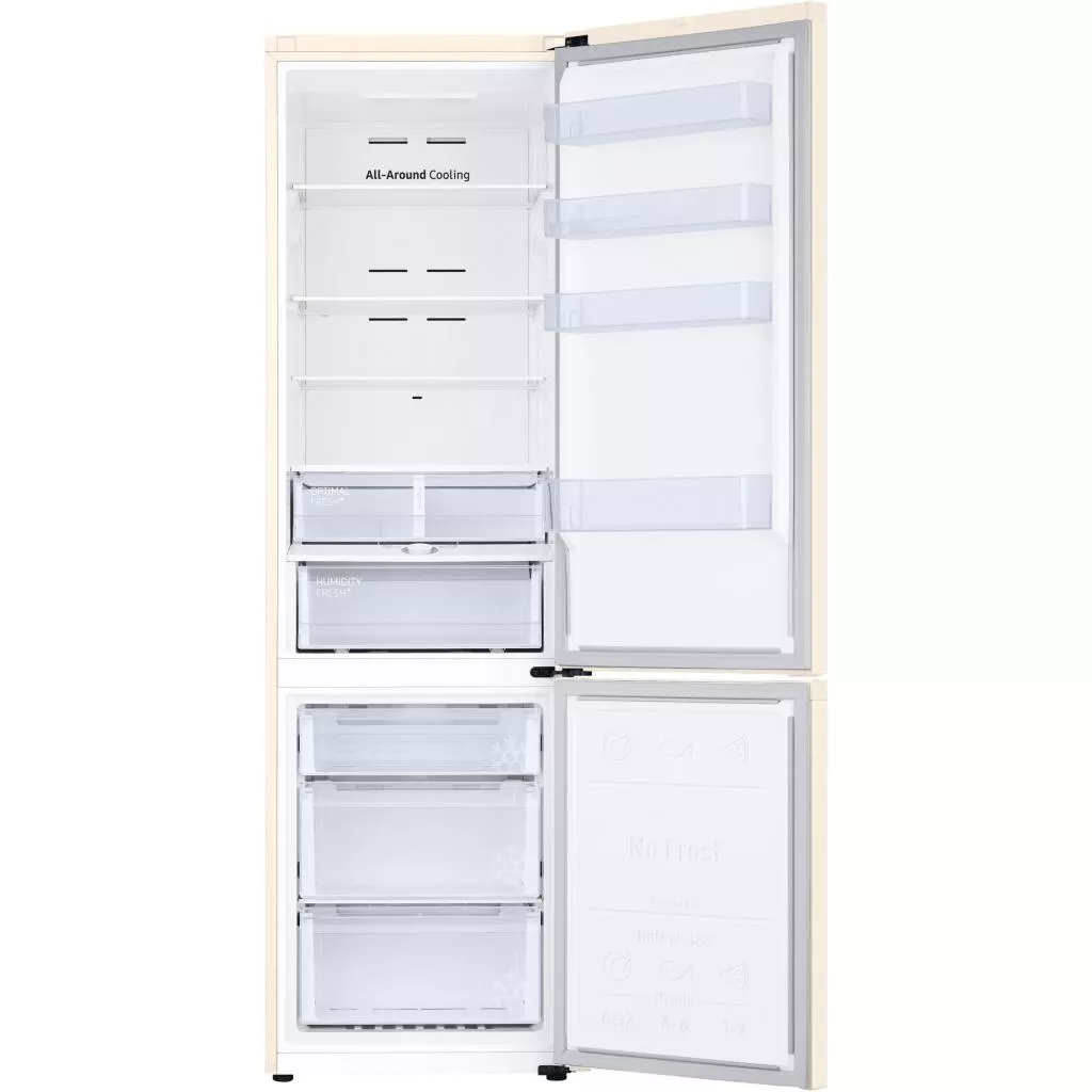 Все уголки рабочей камеры холодильника охлаждаются тщательно и равномерно, ведь модель поддерживает технологию All-Around cooling. Система обеспечивает подачу охлажденных потоков воздуха через отверстия над каждой полкой, поэтому внутри прибора поддерживается стабильный климат, а продукты остаются свежими дольше.