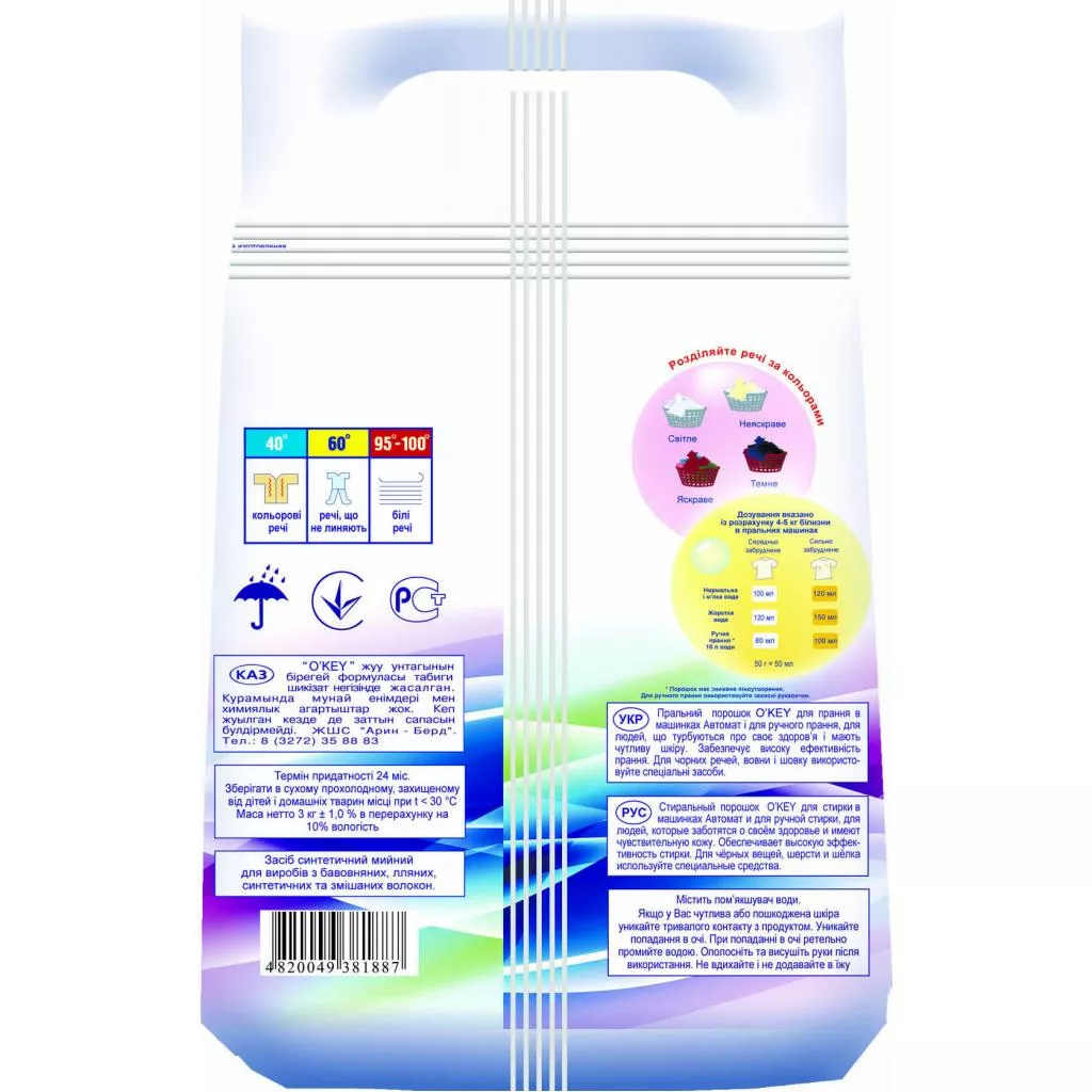 Стиральный порошок O'key Цветочный букет предназначен для автоматической стирки. Подходит для стирки цветных вещей.