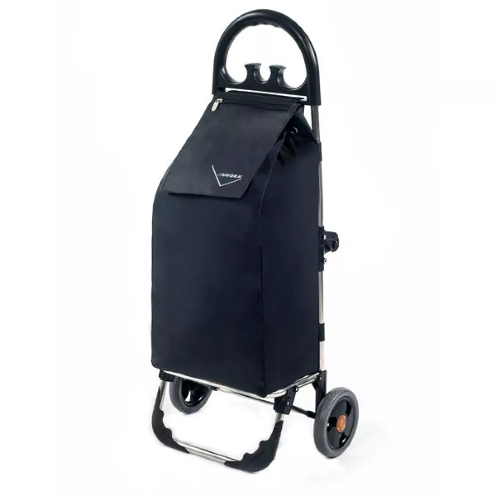 Компактная и легкая модель сумки-тележки Venezia Click оснащен и укомплектована вместительной сумкой большого объема с внутренним водозащитным покрытием, и имеет прочный и надежный и стабильный каркас с алюминиевой рамой, рассчитанный на 30 кг нагрузки. С помощью простого нажатия на кнопку каркас тележки складывается вдвое и сдвигается, делая тележку плоской и компактной для хранения. Удобная полиуретановая ударопрочная ручка, совмещенная с крючками для дополнительных пакетов. А такая приятная мелочь, как карман-кошелек на молнии в закрывающем клапане, способствует безопасному хранению мелких предметов (ключи, кошелек, косметика) и экономии времени на поиск нужного предмета. Хозяйственная сумка на колесах не только обеспечит удобство во время шоппинга, но и даст возможность избежать проблем со здоровьем, возникающих в результате нагрузки на позвоночник и суставы при ношении тяжестей. Сумки-тележки Aurora - это 100% итальянский продукт и современное решение для комфортного шоппинга.