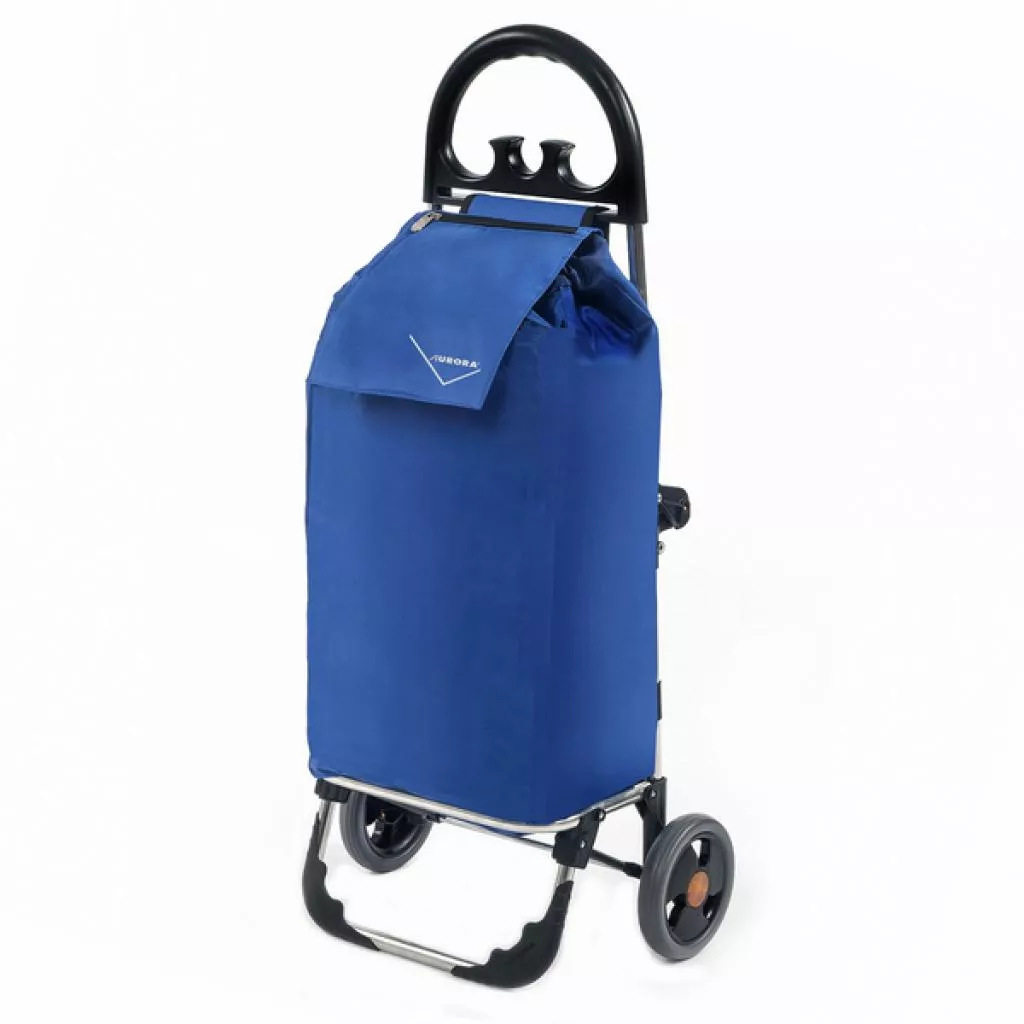 Компактная и легкая модель сумки-тележки Venezia Click оснащен и укомплектована вместительной сумкой большого объема с внутренним водозащитным покрытием, и имеет прочный и надежный и стабильный каркас с алюминиевой рамой, рассчитанный на 30 кг нагрузки. С помощью простого нажатия на кнопку каркас тележки складывается вдвое и сдвигается, делая тележку плоской и компактной для хранения. Удобная полиуретановая ударопрочная ручка, совмещенная с крючками для дополнительных пакетов. А такая приятная мелочь, как карман-кошелек на молнии в закрывающем клапане, способствует безопасному хранению мелких предметов (ключи, кошелек, косметика) и экономии времени на поиск нужного предмета. Хозяйственная сумка на колесах не только обеспечит удобство во время шоппинга, но и даст возможность избежать проблем со здоровьем, возникающих в результате нагрузки на позвоночник и суставы при ношении тяжестей. Сумки-тележки Aurora - это 100% итальянский продукт и современное решение для комфортного шоппинга.