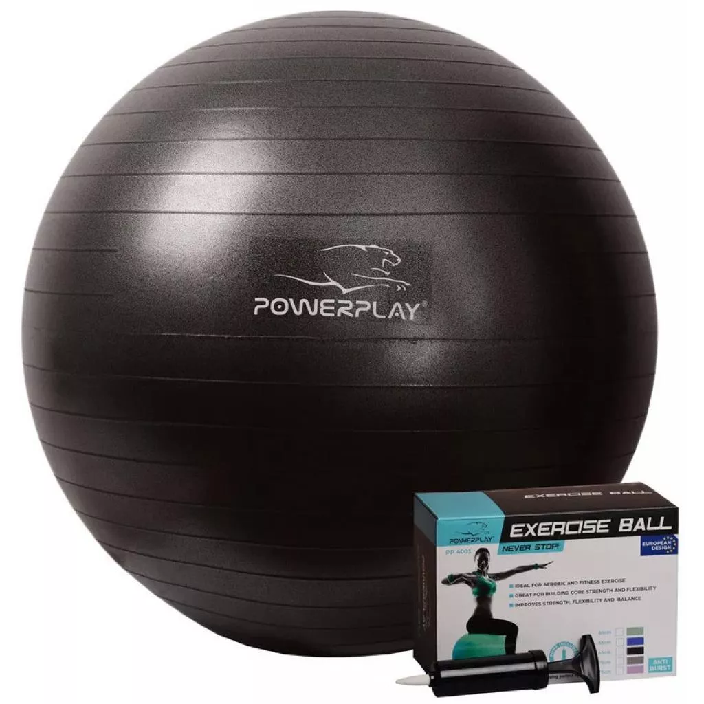 Мяч для фитнеса PowerPlay 4001 65 см + насос изготовлен из прочного PVC, имеет классическую гладкую поверхность, легкий, устойчивый к разрывам (максимально возможная нагрузка до 150 кг), при контакте с кожей не вызывает аллергии.