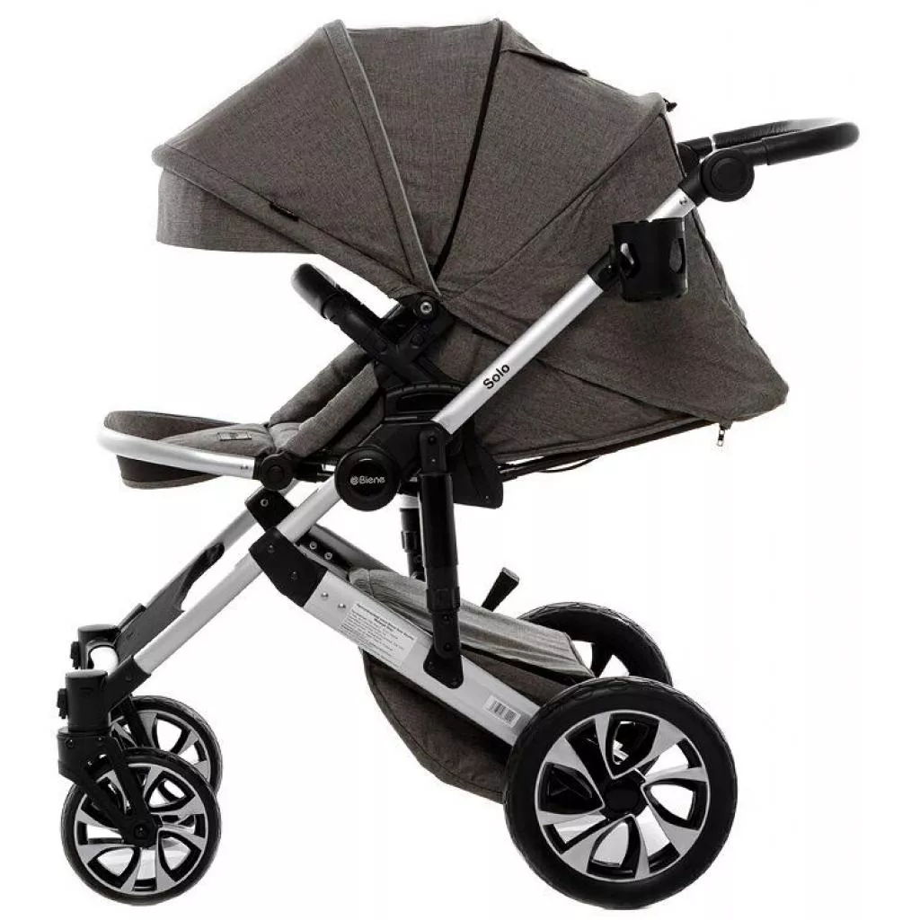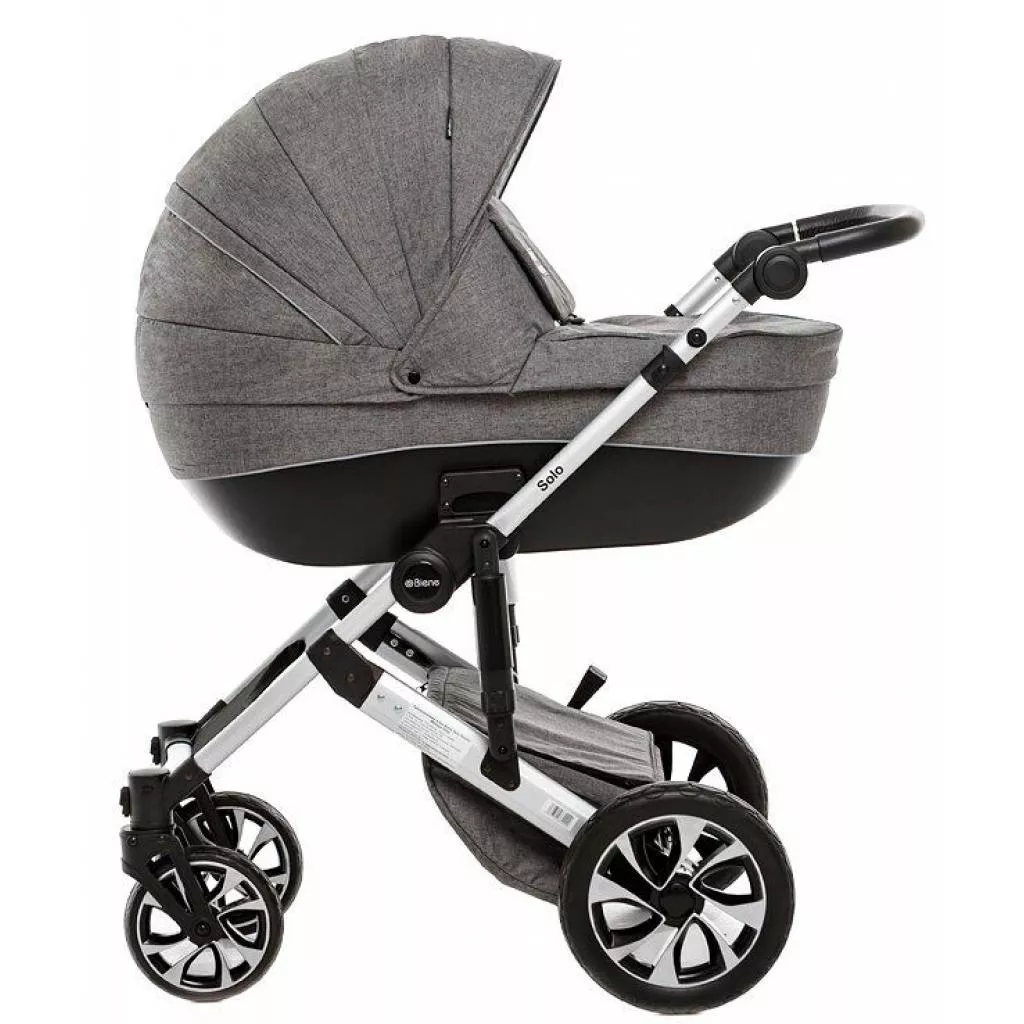 Biene Solo 2 - последователь популярной английской коляски Biene Solo. Данная модель сохранила все свои основные функции от предшественника и, кроме того, усовершенствовалась. Так, все колеса теперь выполнены из полиуретанна - это снижает вес коляски, добавляет маневренности и ограничит вас от ухода за ними. Шасси оснащен и укомплектовано амортизацией на колесах и на самой раме. Последняя - регулируемая для мягкого или более жесткого хода. В целом коляску можно использовать с рождения и до веса ребенка в 22 кг. Производитель позаботился о комфорте не только малыша но и родителей и оснастил ее всеми необходимыми аксессуарами - накидки на ножки для холодов на люльку и прогулочный блок, дождевик, сумка, пеленальный матрасик, подстаканник и антимоскитная сетка.