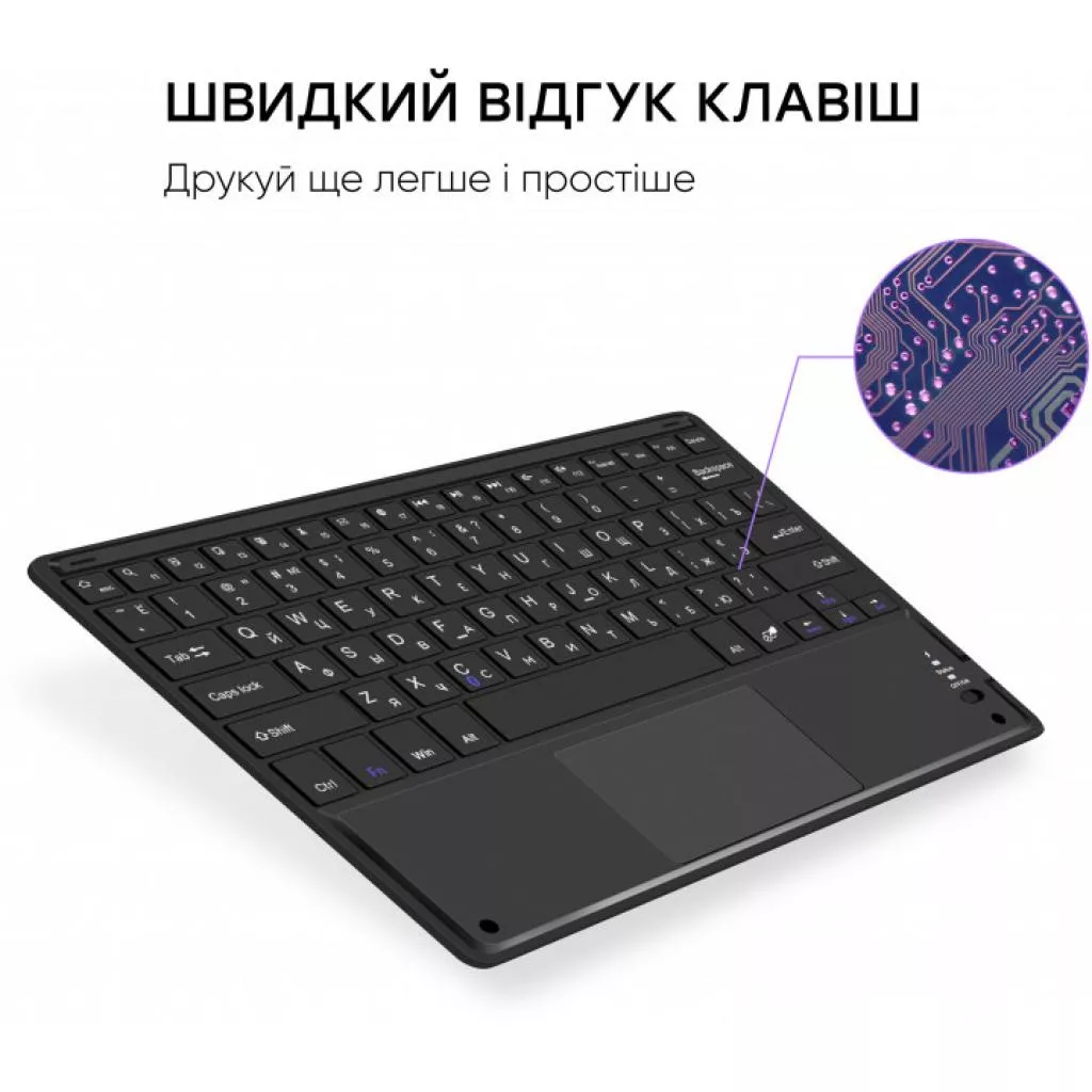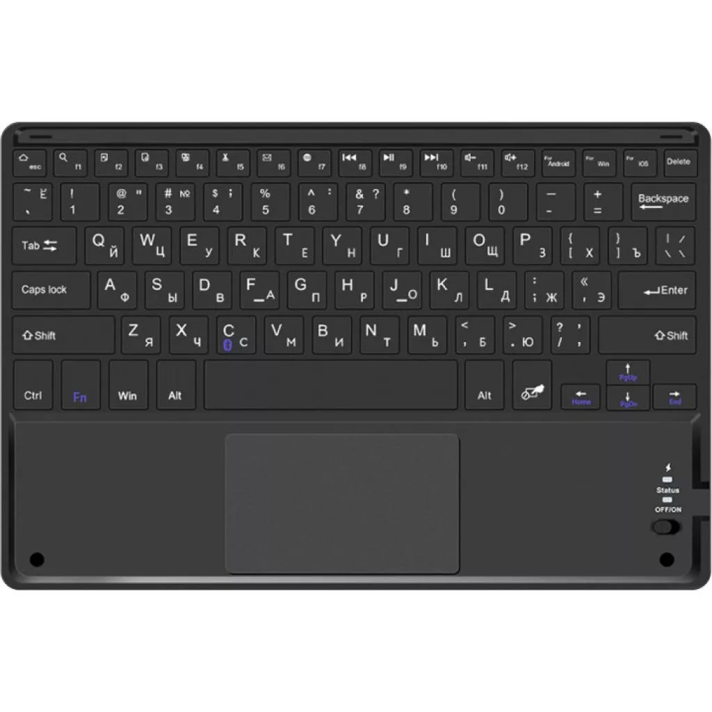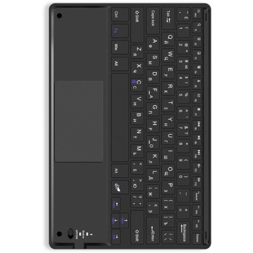 Новый тип беспроводной клавиатуры с тачпадом - это именно то, чего раньше не хватало при взаимодействии с беспроводным устройством. Подключение клавиатуры к планшету, телевизора, других устройств с поддержкой Bluetooth введение и наслаждайтесь мгновенным откликом и простотой заполнения текста и серфинга по девайсом.