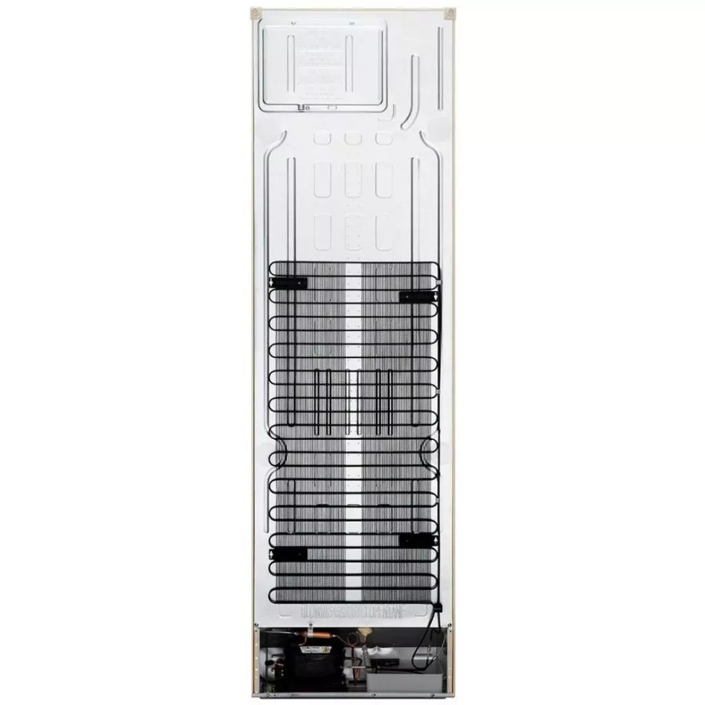 прочная металлическая пластина на задней стенке служит дополнительным источником охлаждения, а также подчеркивает минимализм и изысканный дизайн холодильника.